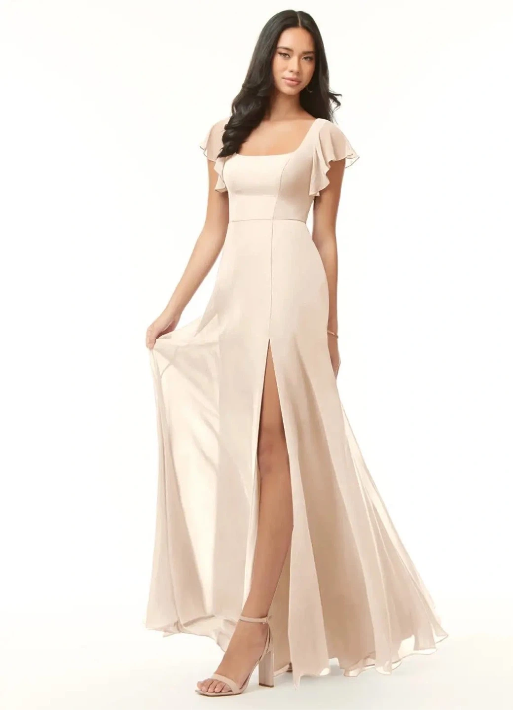 2. Azazie Bondi White Alabaster A-Line Ruffled Chiffon Dress size A16-$30