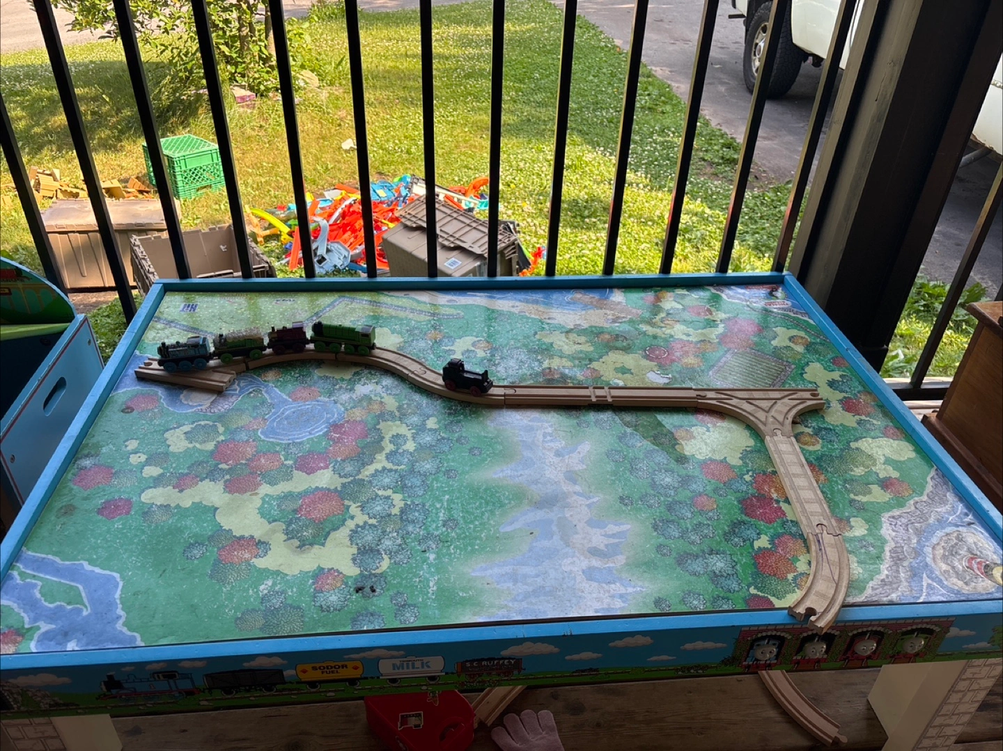 Selling a Thomas the Tank Engine train set table. It includes the table with a fun design on top and some train tracks. Perfect for young train enthusiasts!