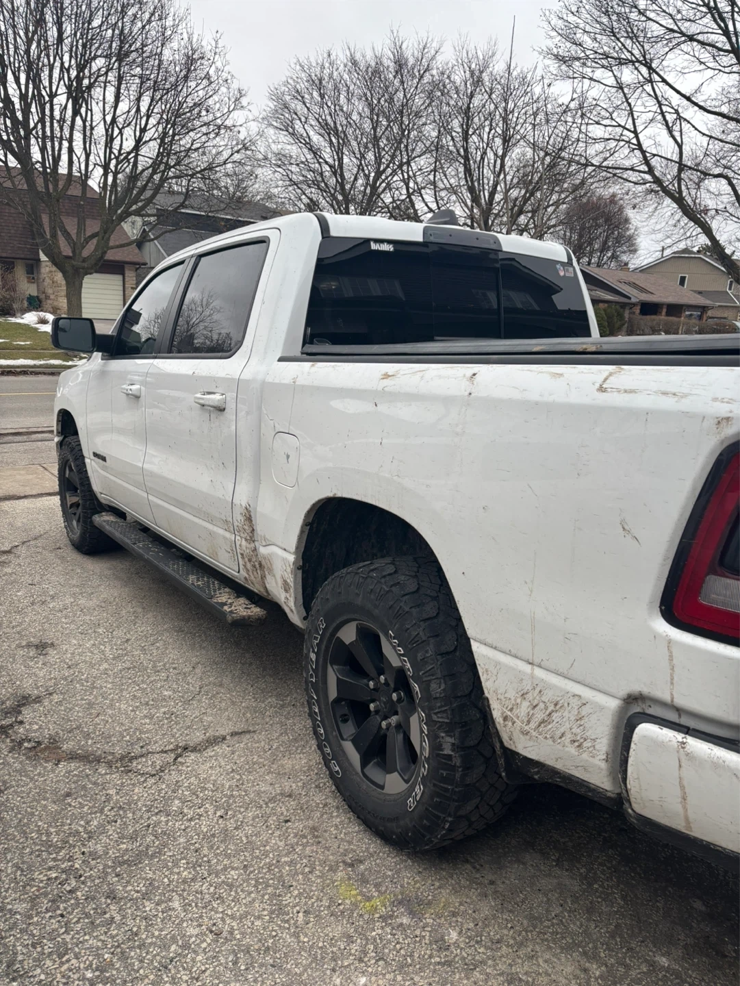 Goodyear Duratrac tires, exceptional in mud and all terrain. Snow peak rated symbol.