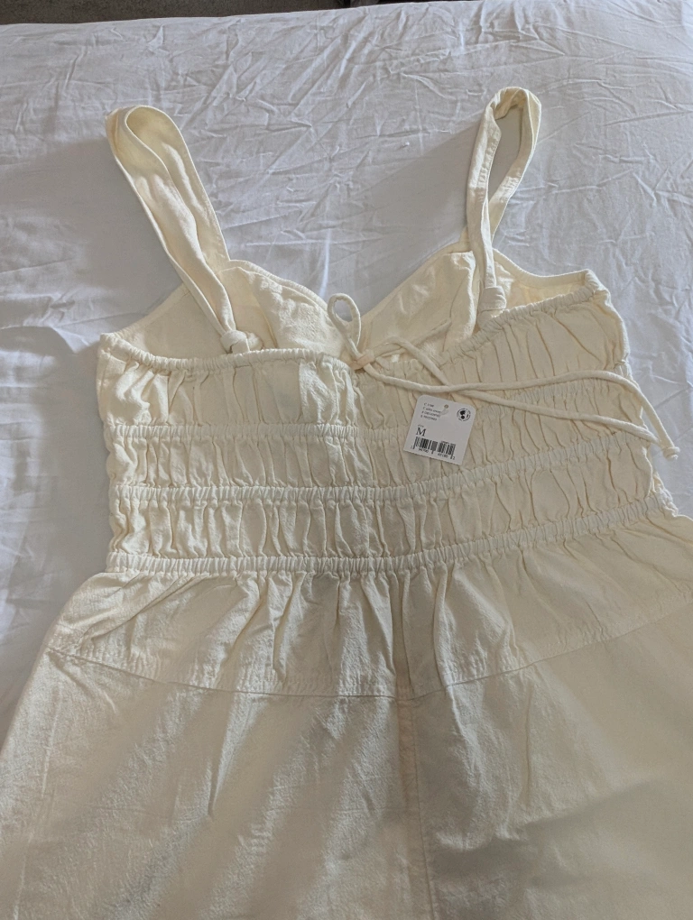 Free People After All Ruched Cream Wide Leg Jumpsuit, Size M