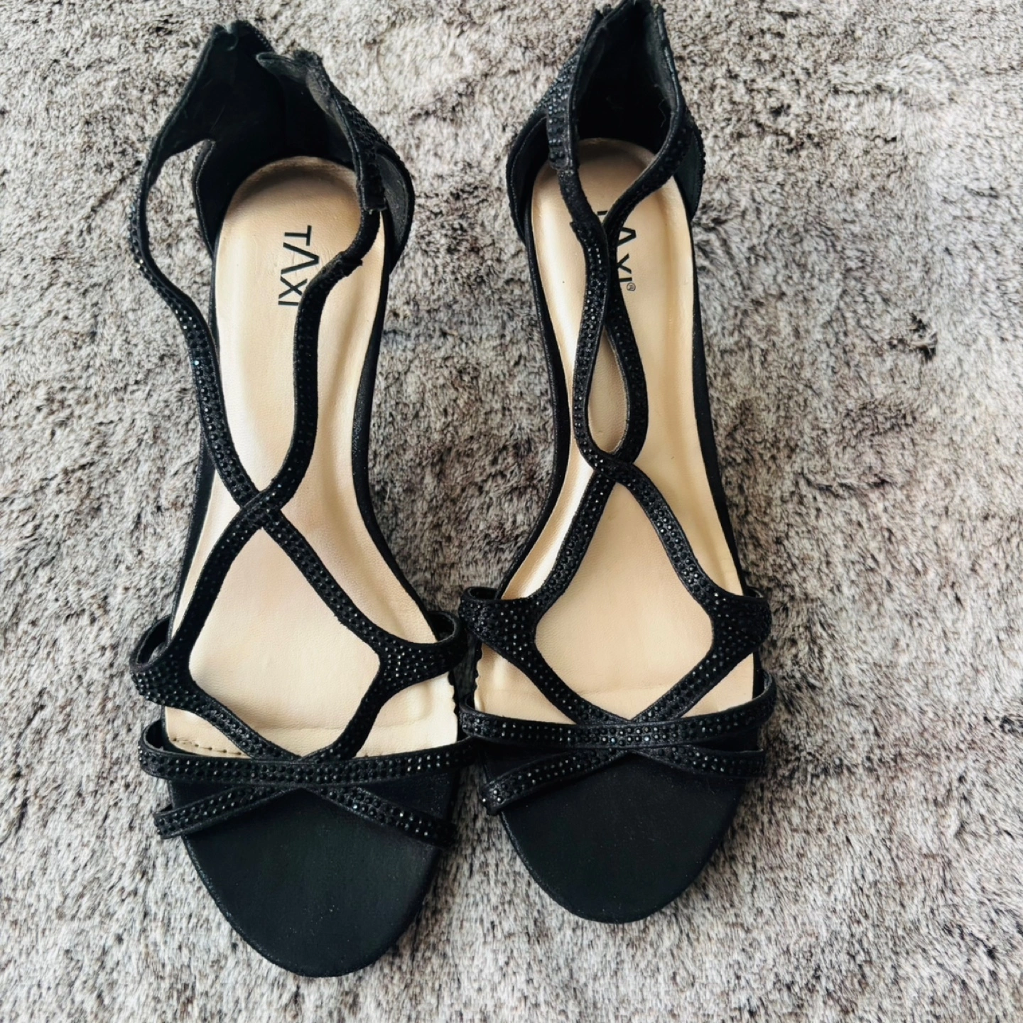 Selling a pair of black strappy heels from Taxi! They feature a stylish design with delicate straps. Perfect for a night out or special occasion