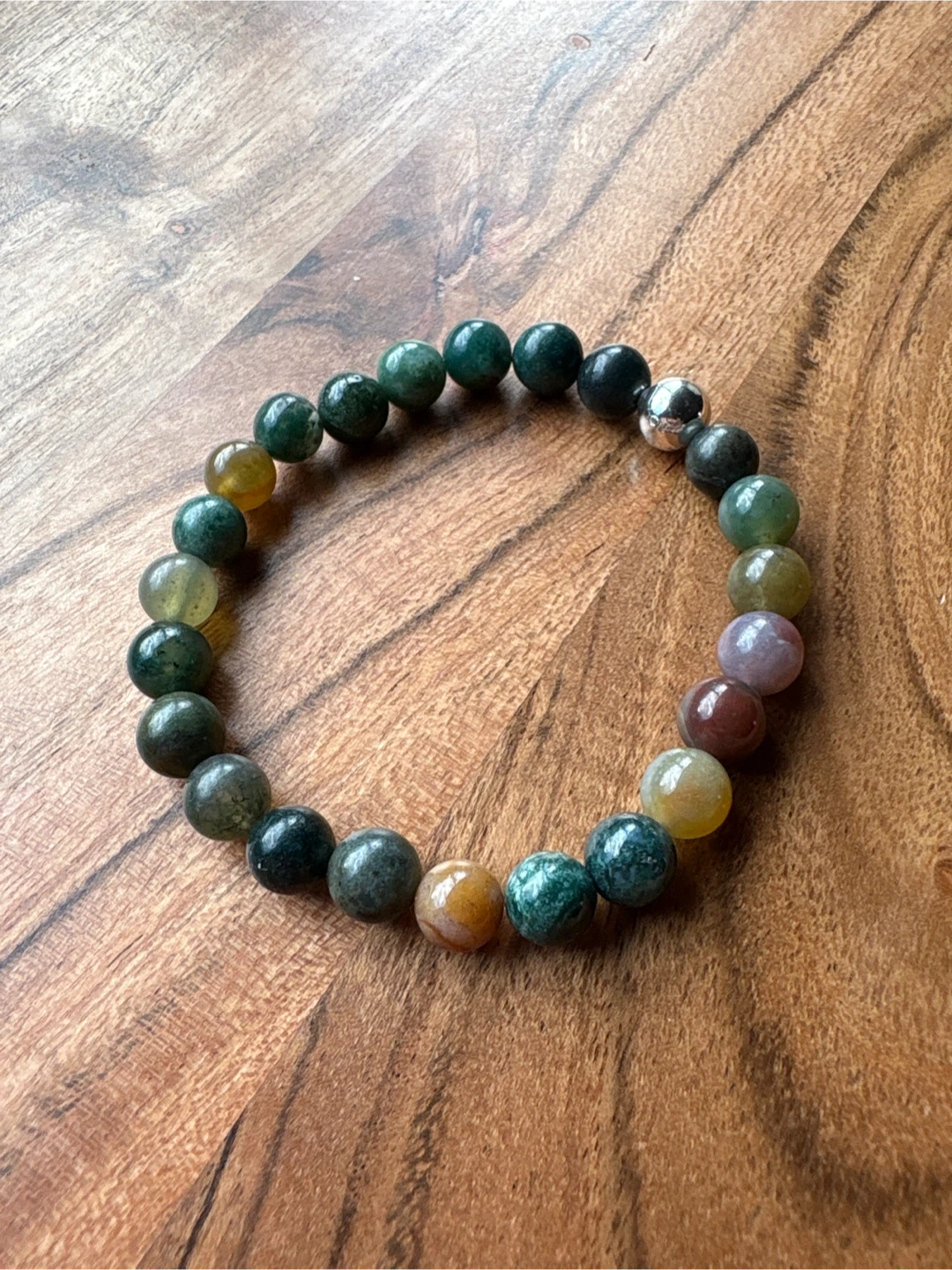 65Here's a beaded bracelet with multi-coloured beads imitating jade or might be real I’m unsure. It's in great condition and would make a lovely addition to your collection