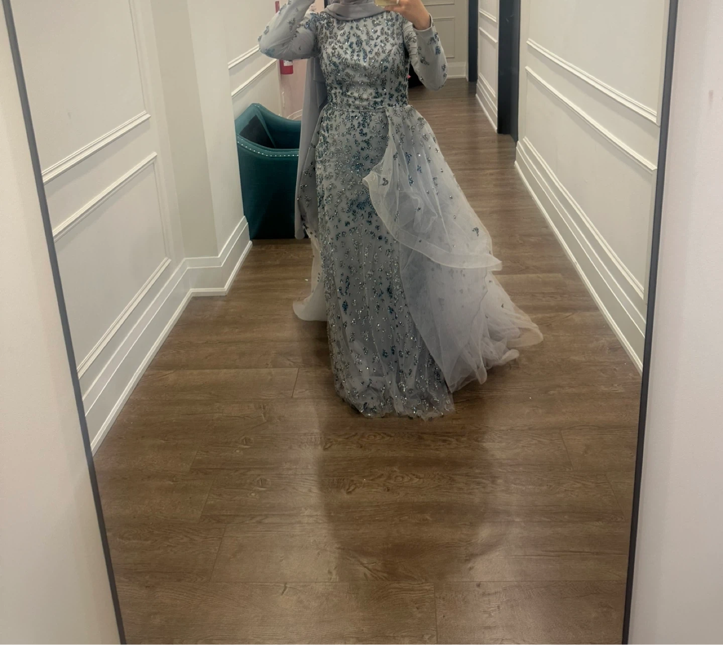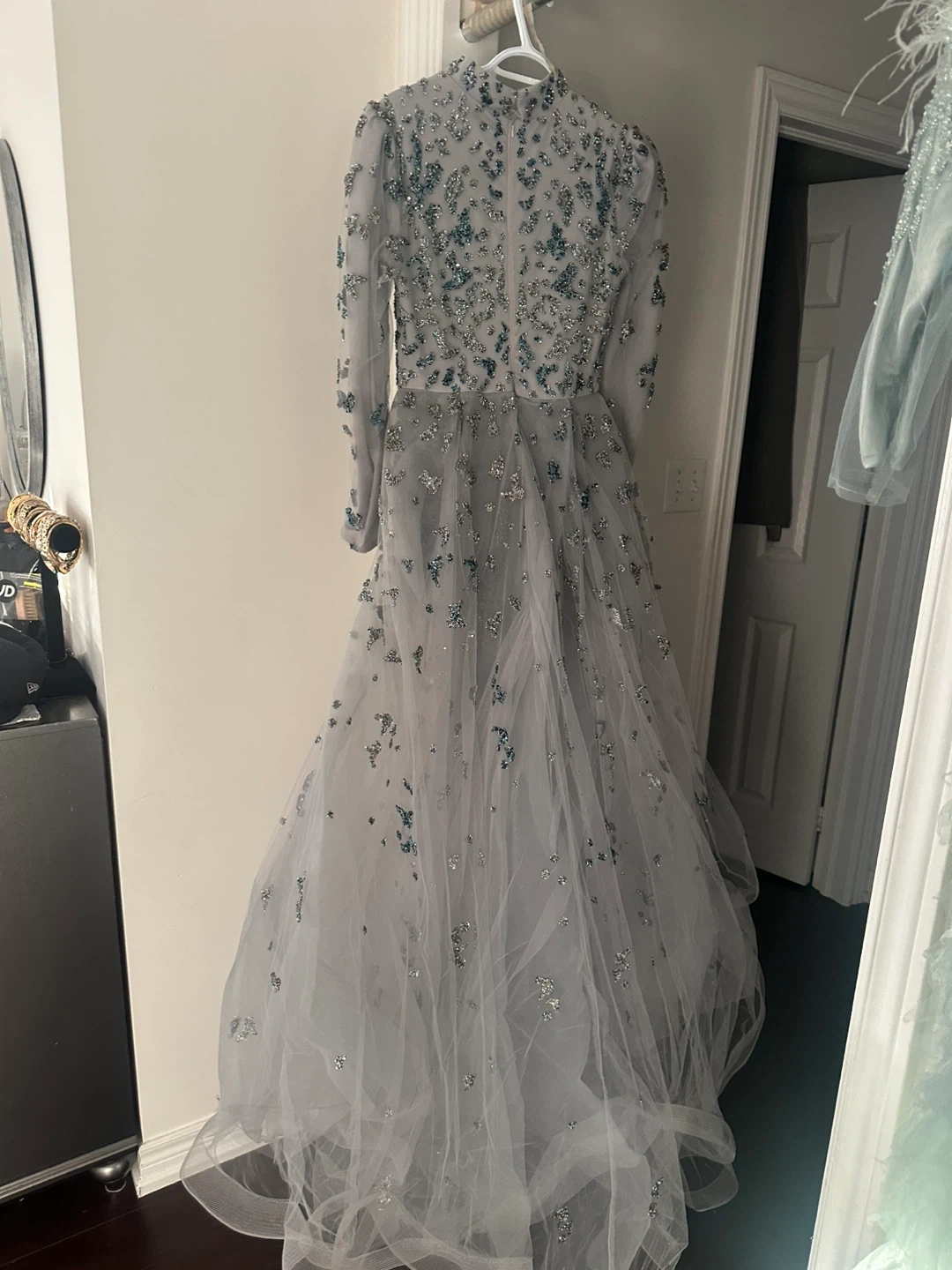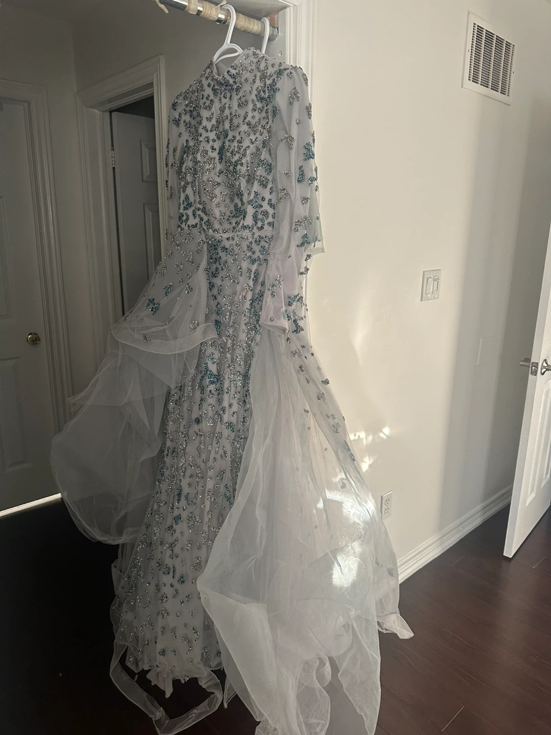 65Beautiful beaded formal gown, perfect for a special occasion! The gown features delicate beading and a flowing design. It's in great condition and ready for a new home