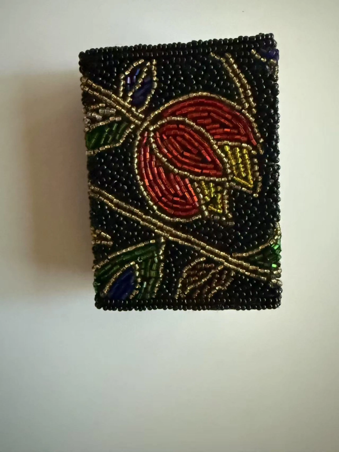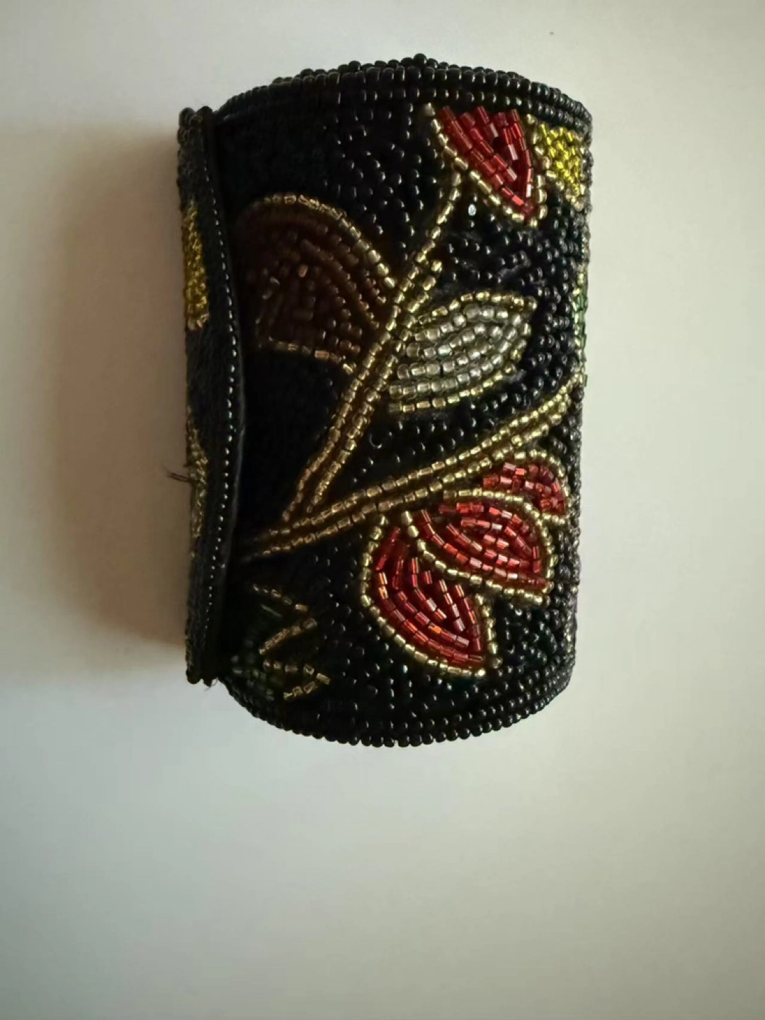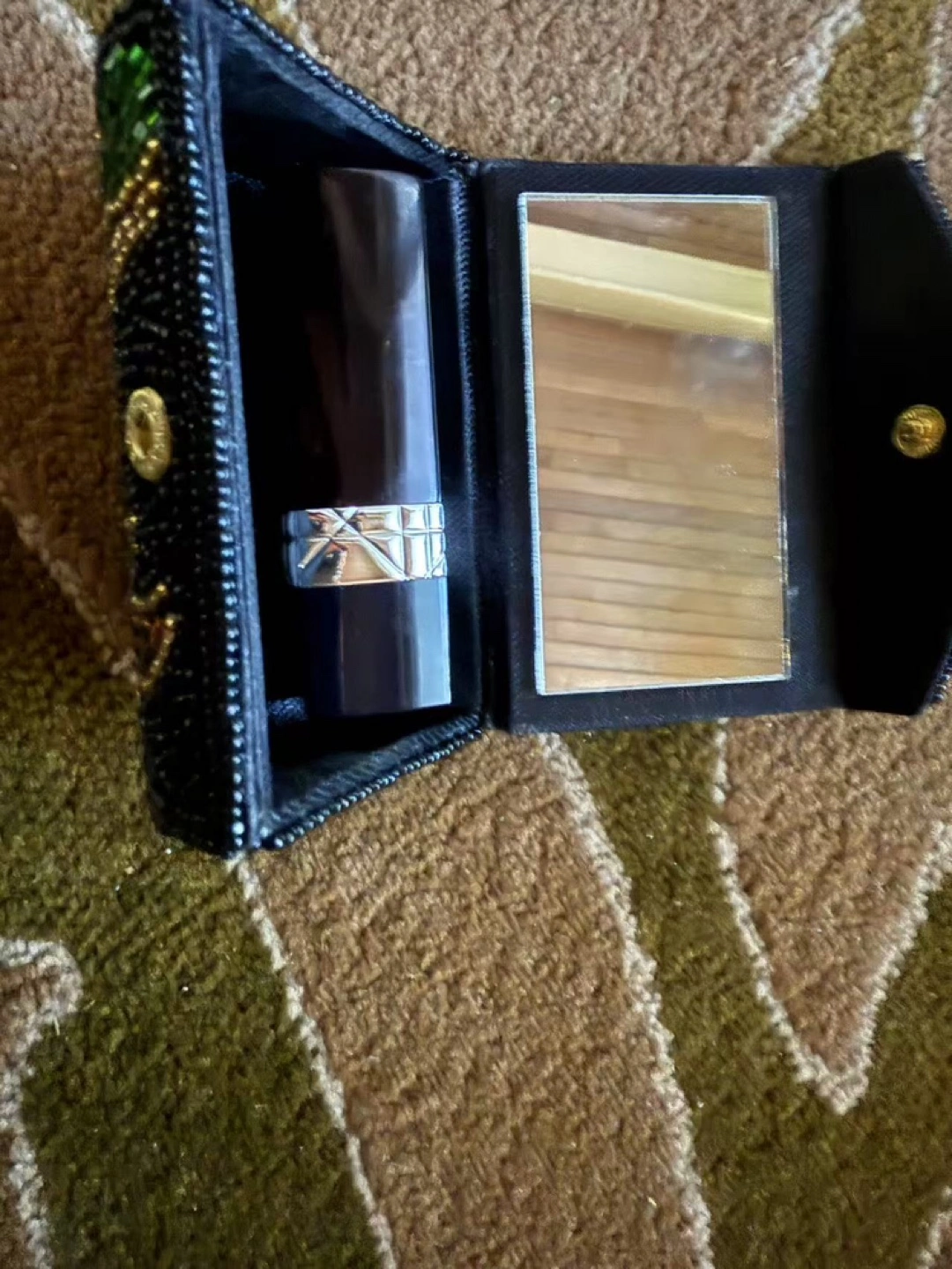 60Unique beaded lipstick case. Features a floral design. Includes a small mirror. Compact and portable. Not including lipstick
