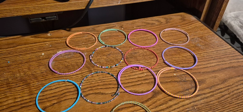 Selling a set of 13 colourful beaded memory wire bracelets! These bracelets are in great condition and come in a variety of colours. They're perfect for adding a fun pop of colour to any outfit!