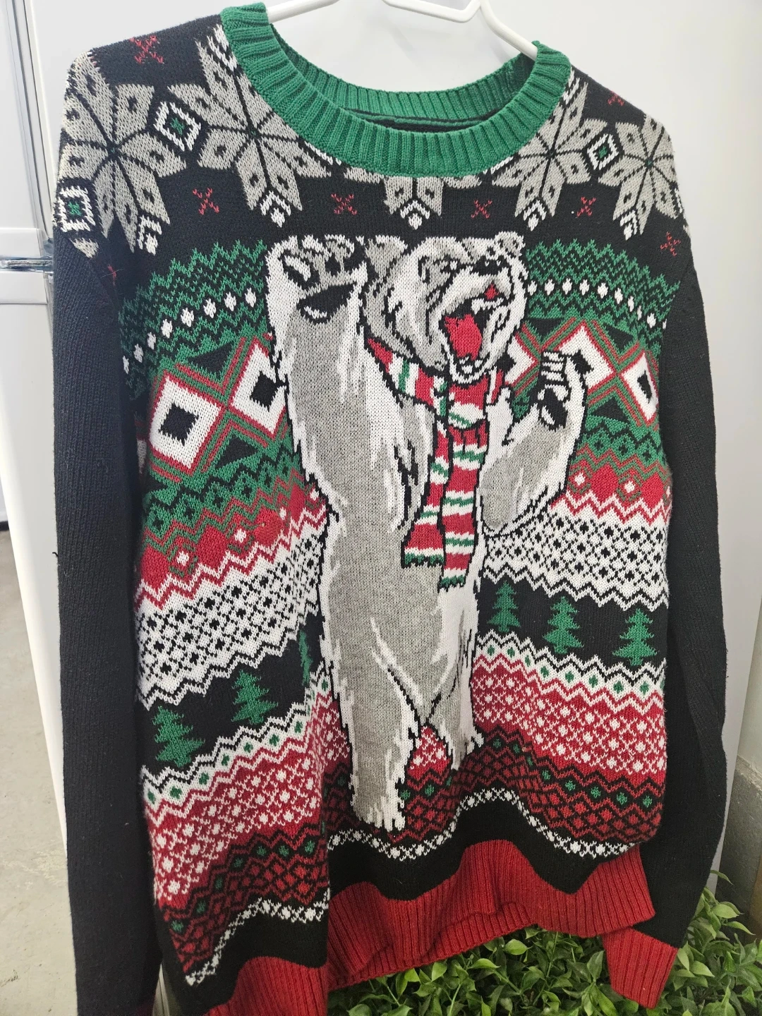 940Cozy Truly Christmas sweater in size large! Features a fun polar bear design, perfect for the holidays. It's in great condition and ready to spread some cheer! Used to light up, no longer Sfpf Oshawa Harmony Road South at 401