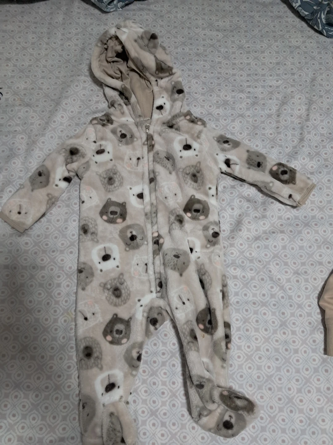 10Here's a cozy baby onesie with a cute bear print! It's perfect for keeping your little one warm and snug. It's in great condition and ready for a new home