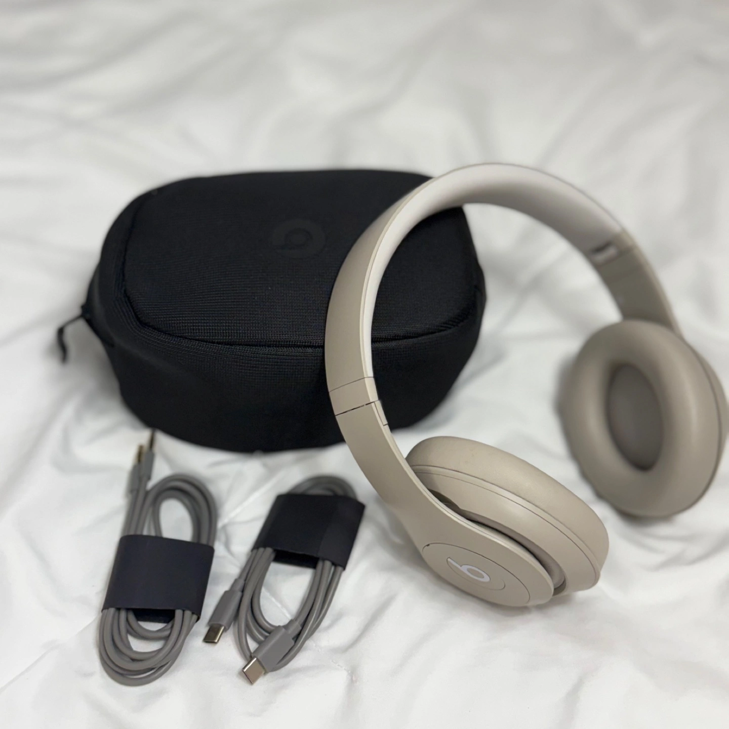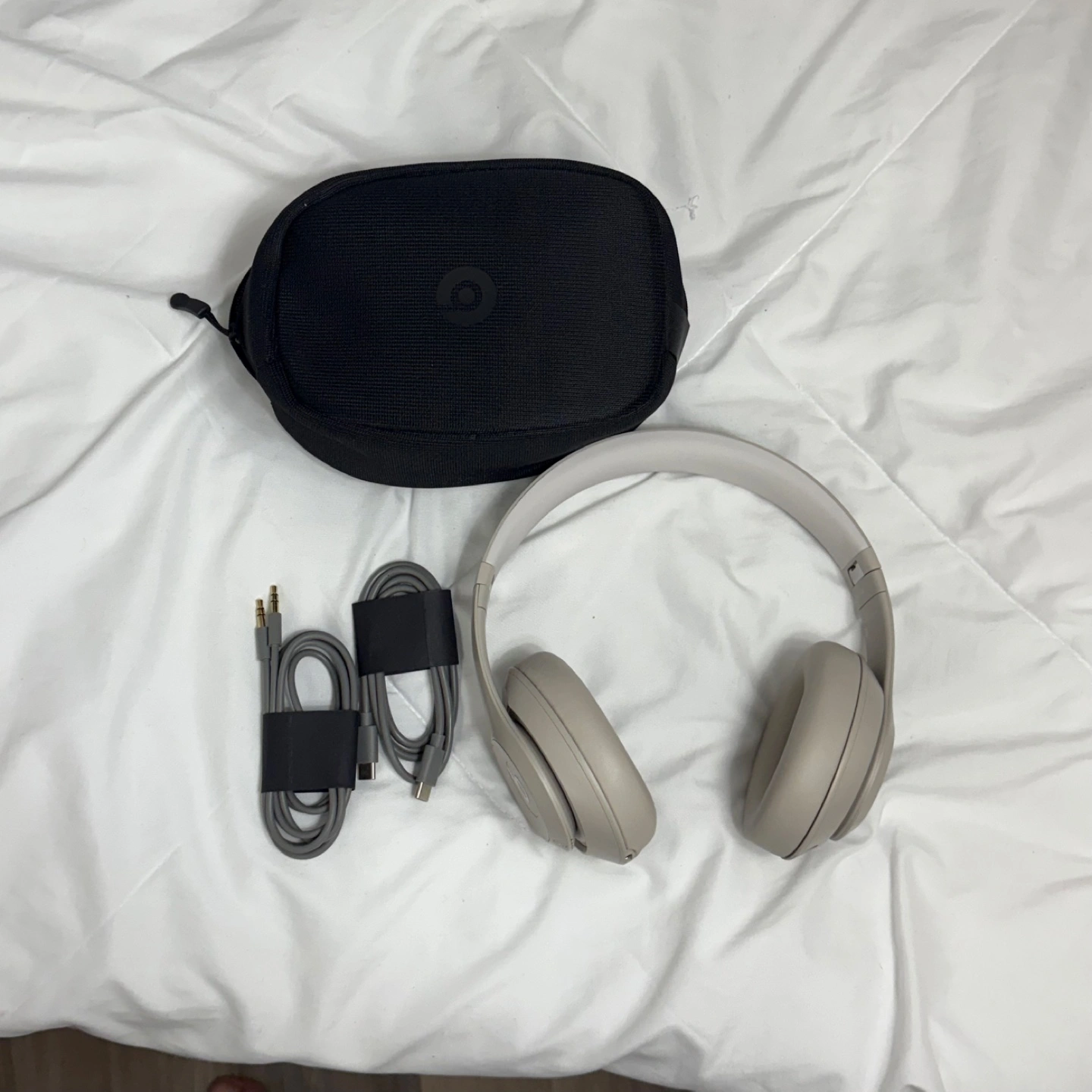 Selling a pair of Beats Solo3 Wireless headphones in the Sand Dune colour. They are in excellent condition and come with the original carrying case and charging cable. These headphones are known for their comfortable fit and great sound quality. Perfect for everyday use or travel!