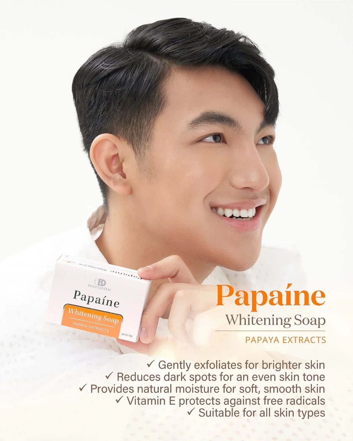 65Selling Beautederm Papaine Whitening Soap! This soap gently exfoliates for brighter skin, reduces dark spots for an even skin tone, provides natural moisture for soft, smooth skin, and Vitamin E protects against free radicals. It's suitable for all skin types