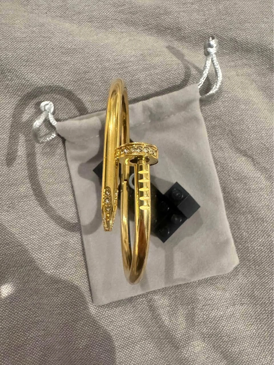 1018k gold plated, non-tarnish, waterproof, non-fade, comes with a cloth dust bag. 1 for $60, 2 for $100