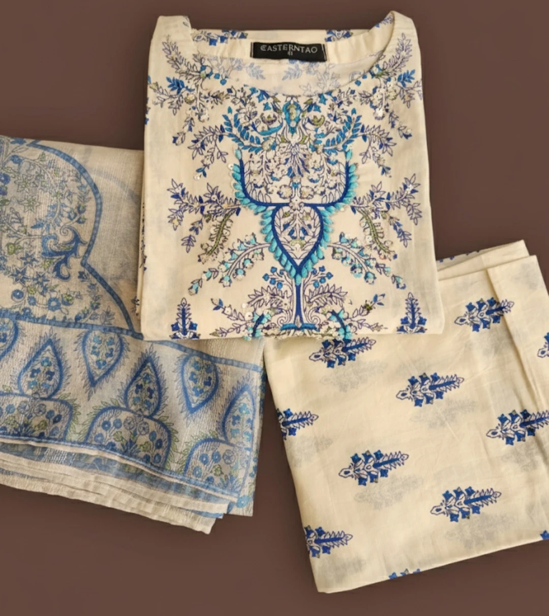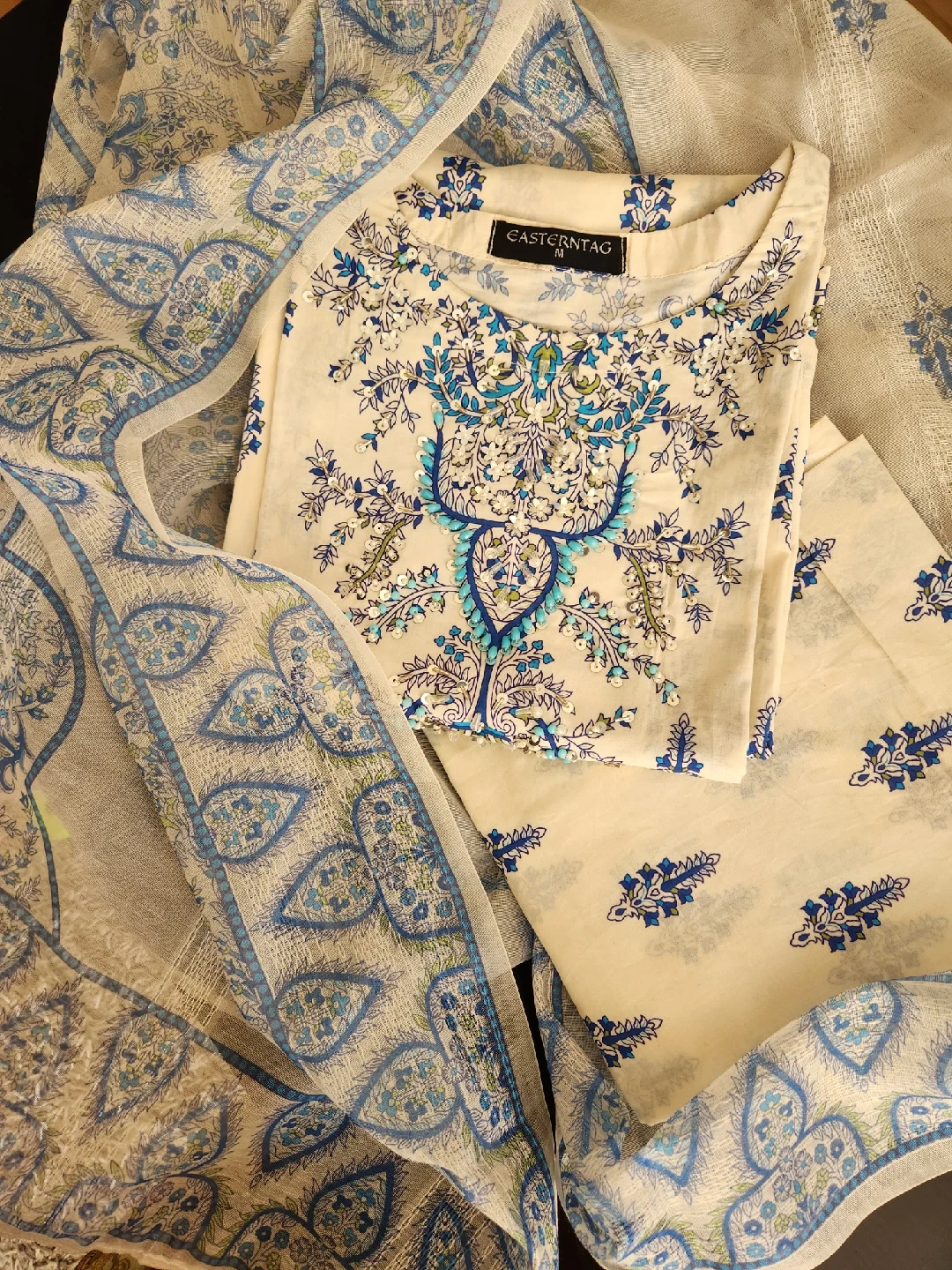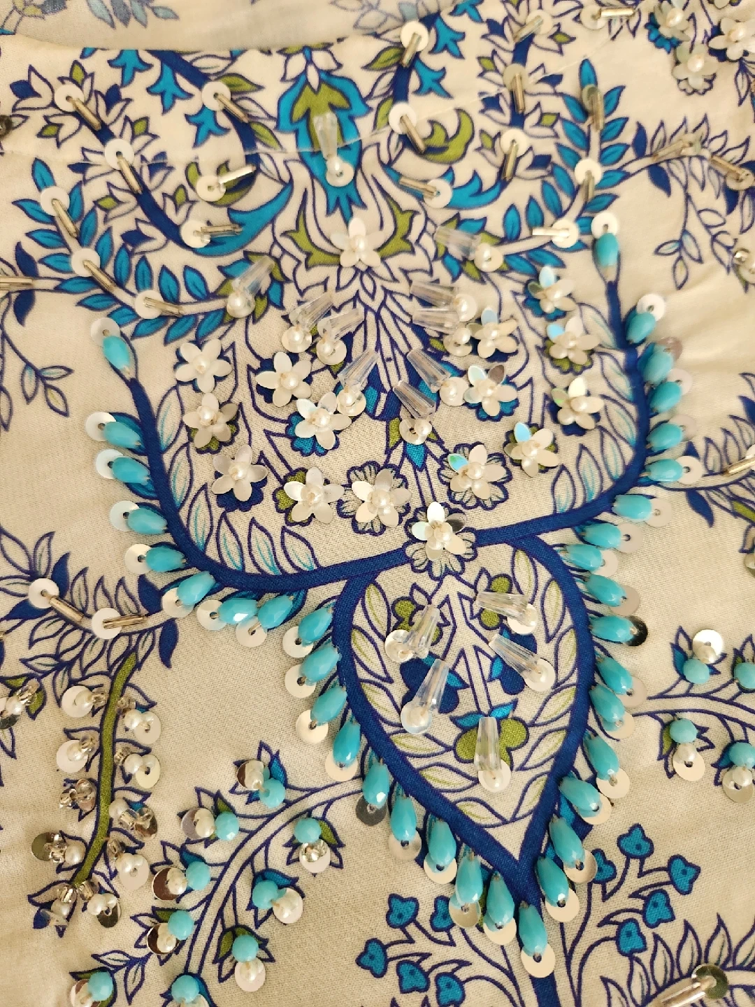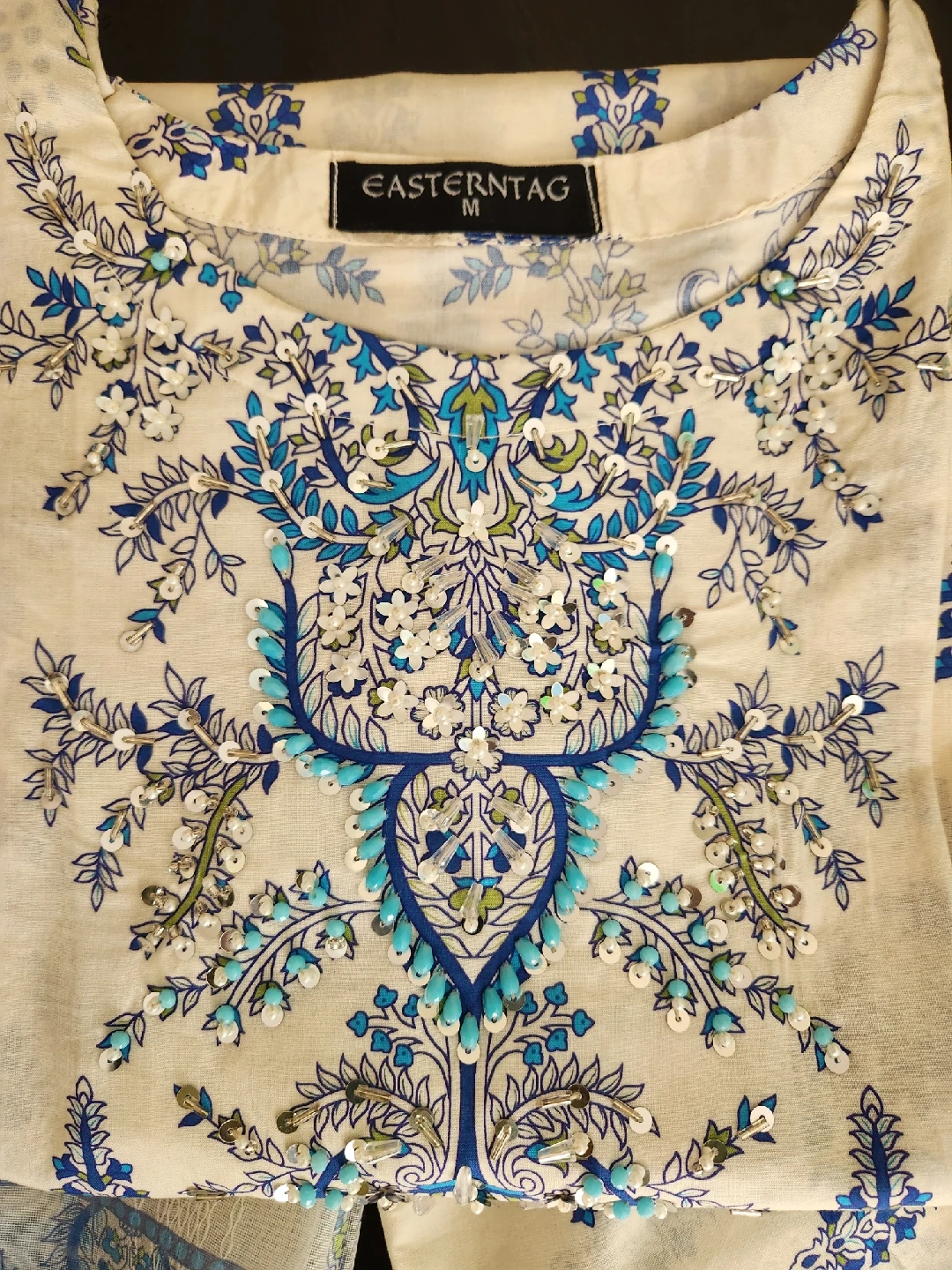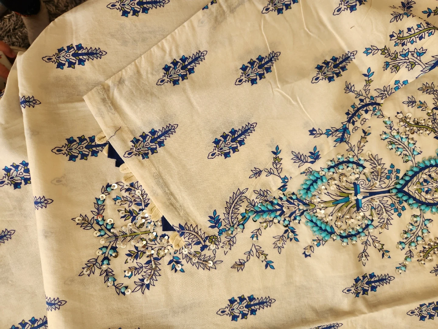 15Beautiful 3 pcs lawn suit, beadswork neckline with cotton net dupatta Size Medium ( chest 20.5) Price $55 Brand new Check other listings too Door pick up also available