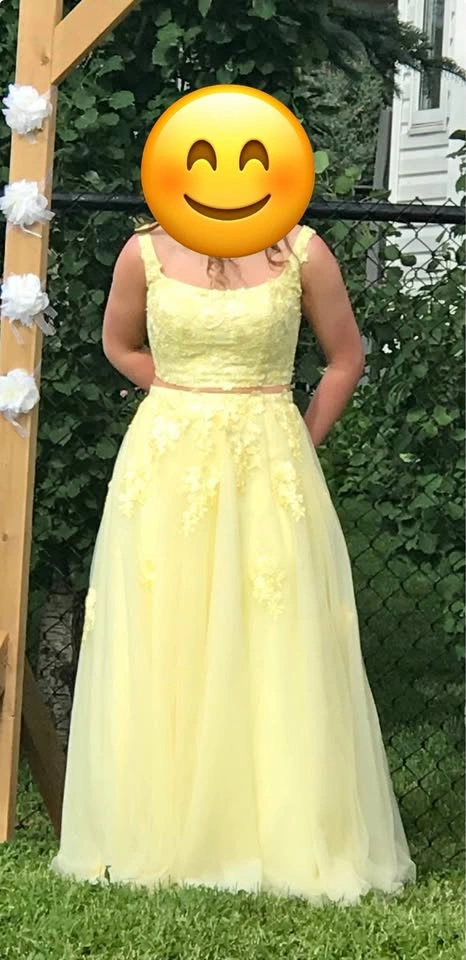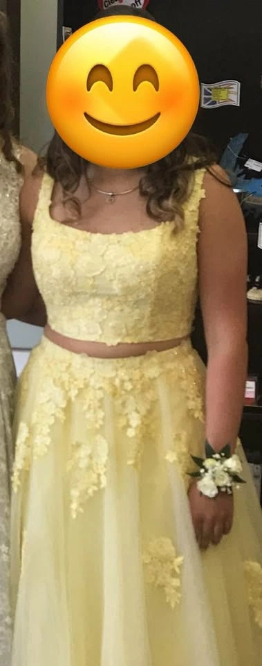 5Beautiful & Unique 2pc Yellow Dress! Size 10 Bought at a dress shop in Edmonton for $750. It was just dry cleaned for you and ready to wear. Colour and style is gorgeous and there was no duplicate at her grad! Perfect for grad or any formal/dressed up occasion! Worn for 3 hours. Payment Plan can also be worked out!