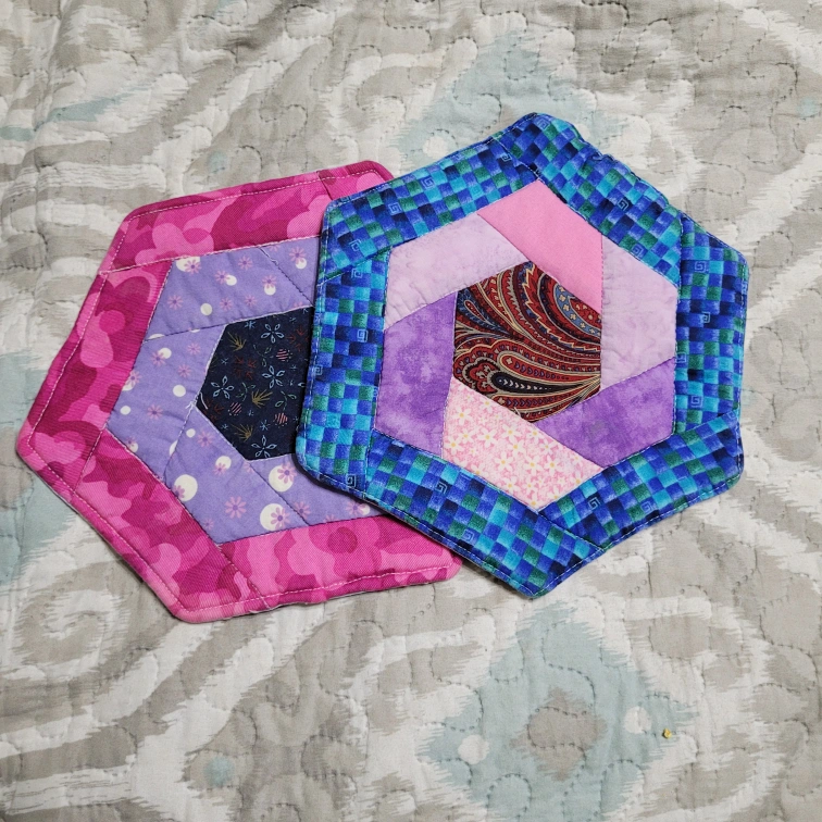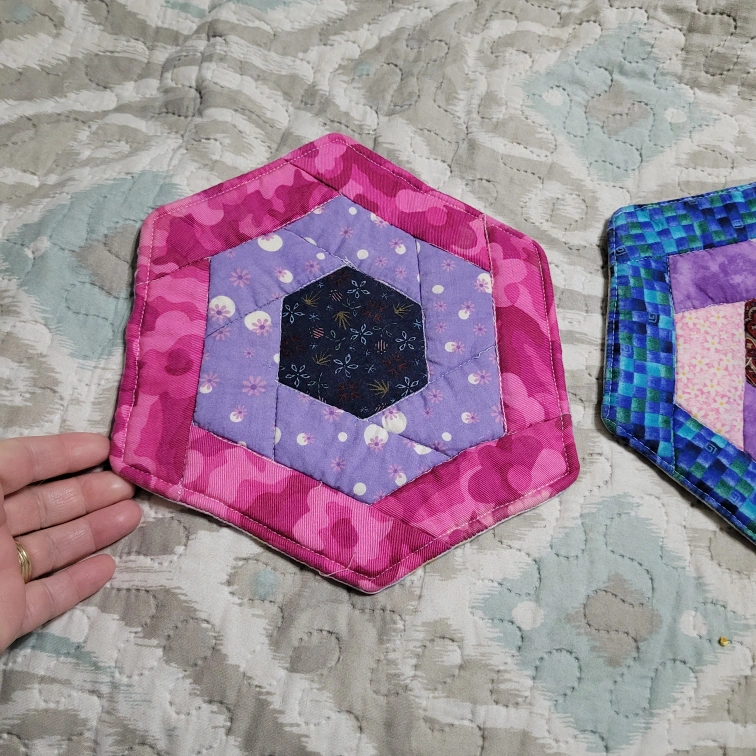 Beautiful Pair of 8" Vintage Handmade Quilted Hot