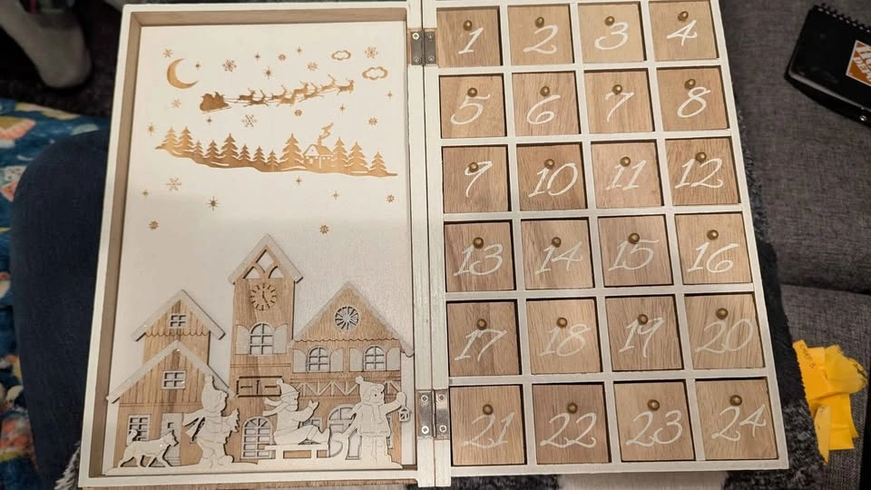 Henry Brubaker reusable advent calendar, like new condition. Opens up like a book. From smoke free, cat friendly home. Pickup near Brentwood.