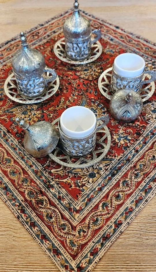 Selling a beautiful Turkish coffee set! It includes four cups with lids and saucers, all in a lovely silver finish. Perfect for adding a touch of elegance to your coffee routine or for special occasions!