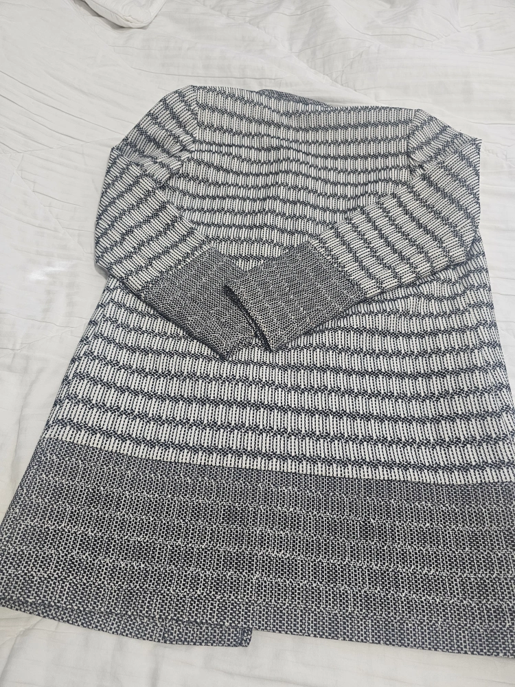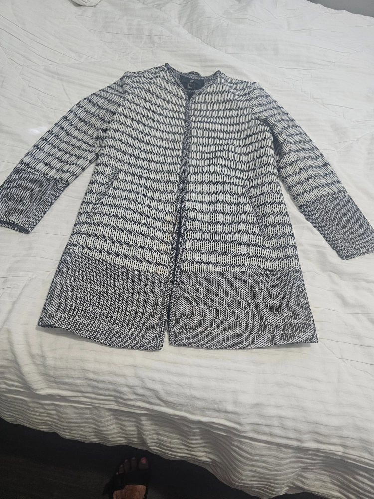 10Bought from H&M. Wore it once, too big for me. White with Grey pink stripes as per picture. Fully lined.