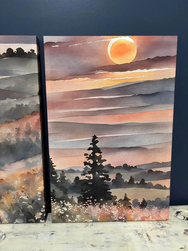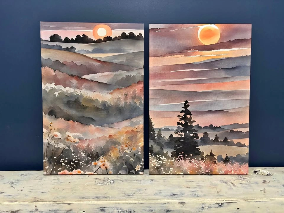10Set of two beautiful sunset prints on canvas. Each canvas is framed onto a 23.6”X15.7”X1.5” wooden frame. Beautiful colours, matte canvas material and ready to hang. Pick up in North Bowmanville near Northglen Blvd and Middle Rd.