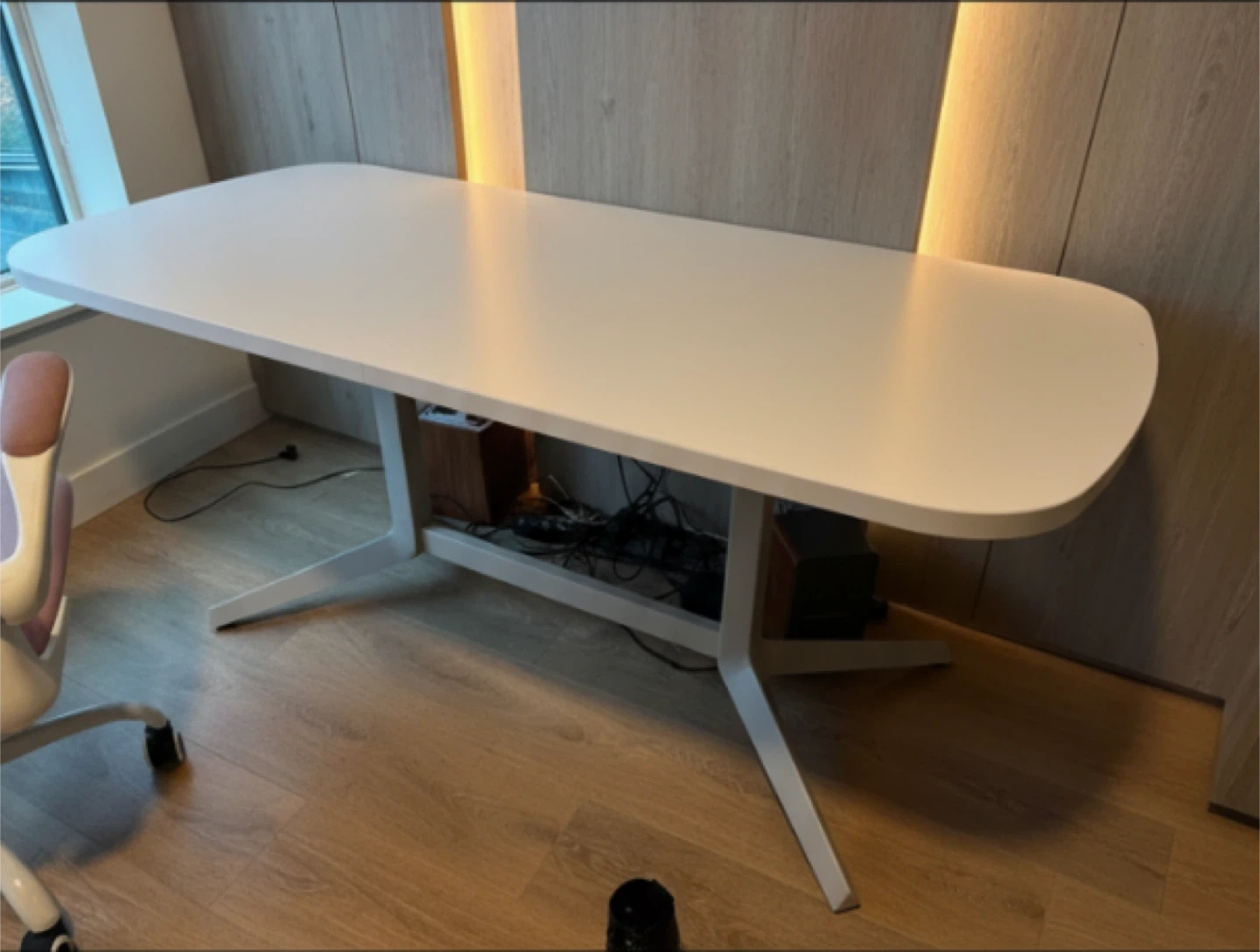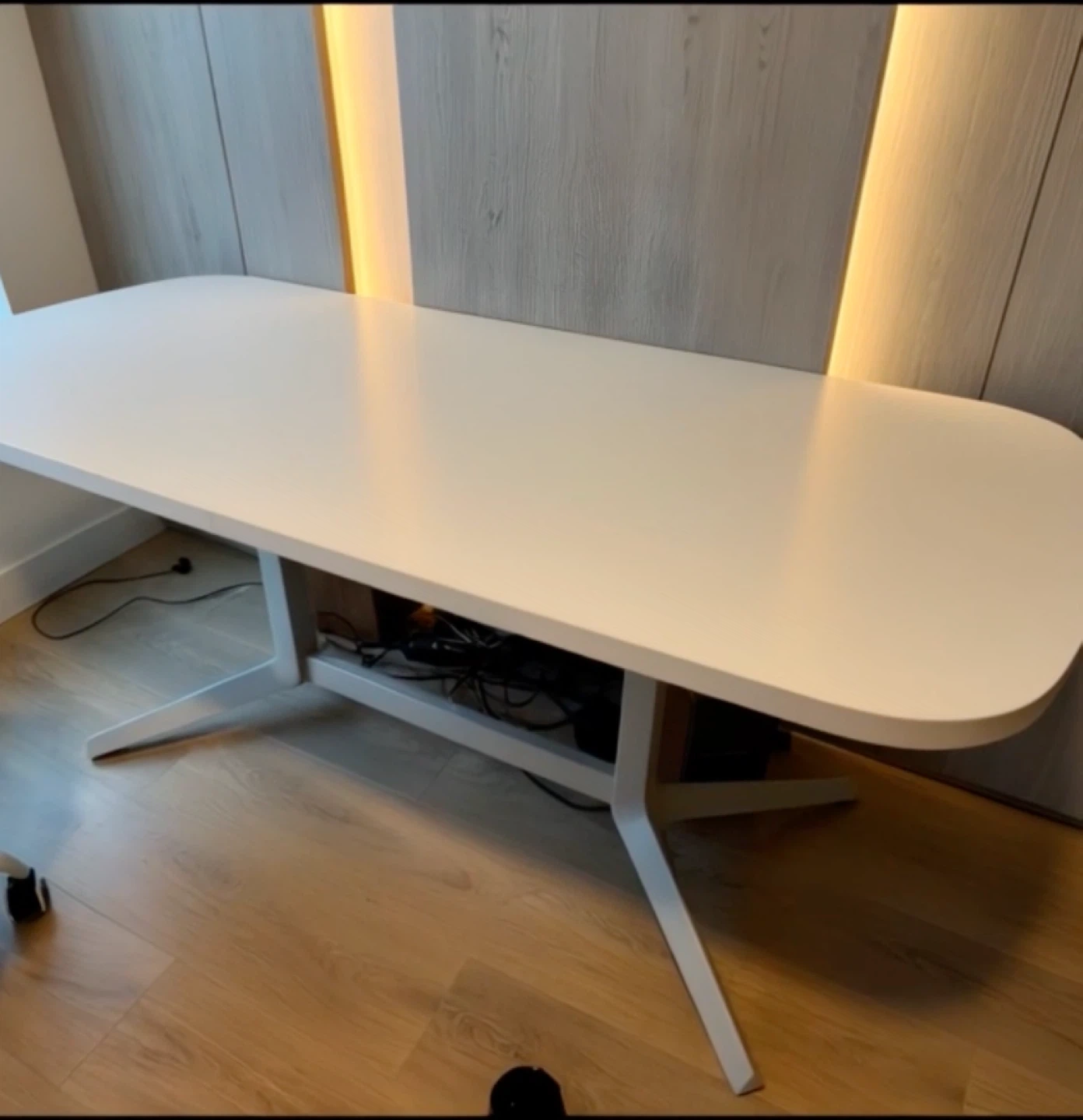 🌿Upgrade your workspace with this modern white desk featuring a smooth top and solid grey steel legs. -The minimalist design fits perfectly in any home office, studio, or study area. The desk is in excellent condition with no major marks or damage. It is has heavy top and strong metal legs but also easy to assemble. Ideal for anyone who wants a clean, functional, and modern setup. Inspired by Herman Miller style, offering premium look and quality at an affordable price. • Delivery is available in metro-Vancouver. • Prefer pick up, it is available in surrey. Have a lovely day:)