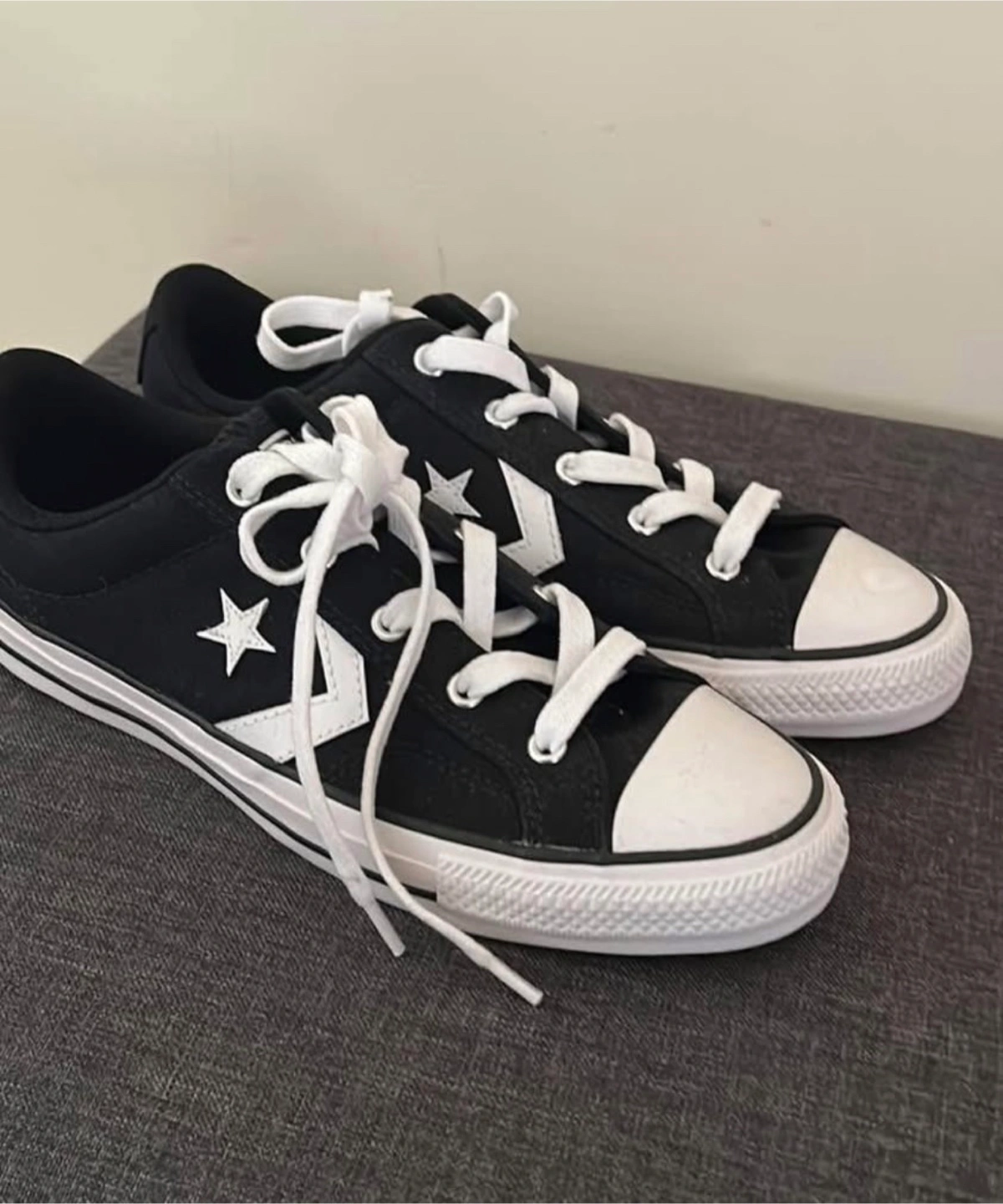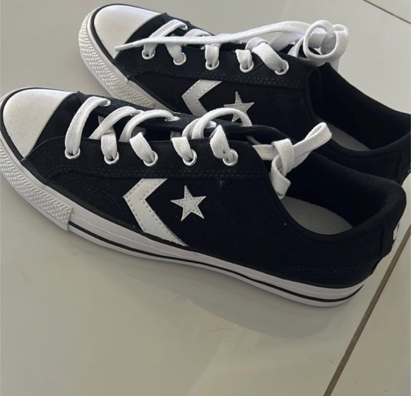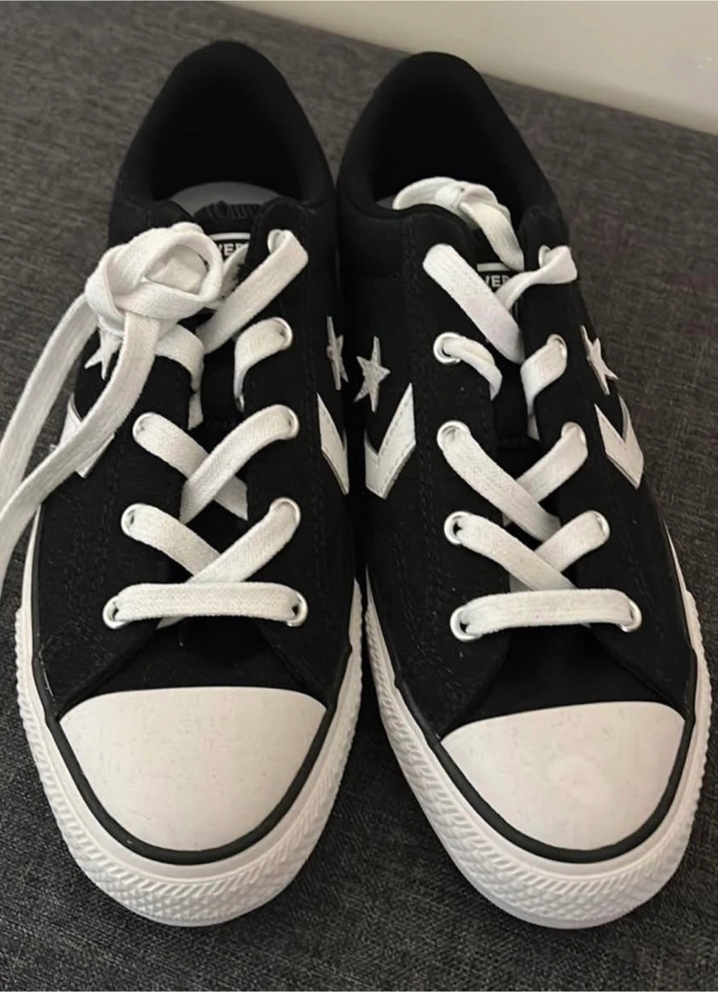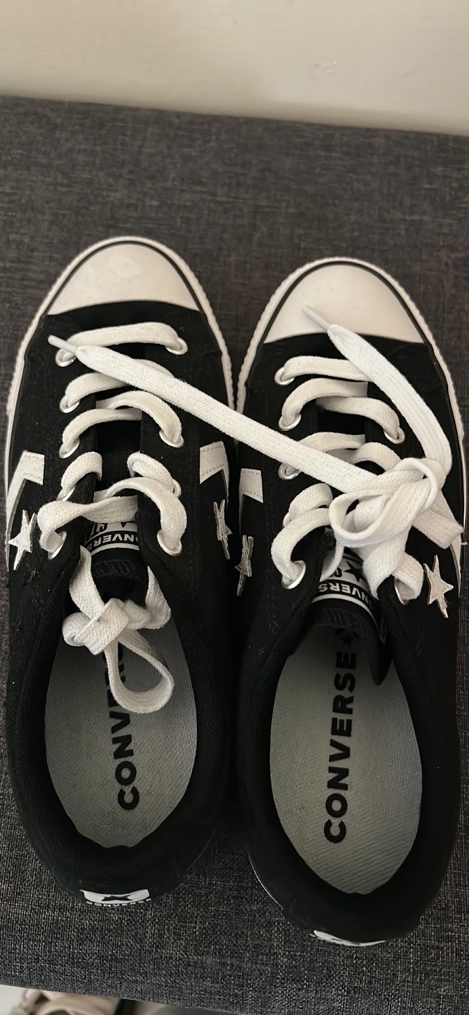 BRAND NEW, WOMENS, never worn. Does not come with box. Shoes in black and white. White laces. Feature white star logo. These shoes can really brighten your day.