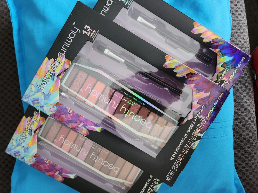 New eyeshadow palettes. Twelve eyeshadows and one brush. Pretty colours. Great for gifts. 3.00 each