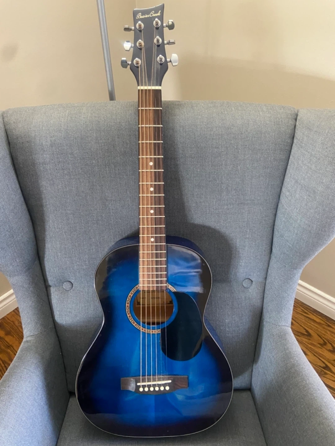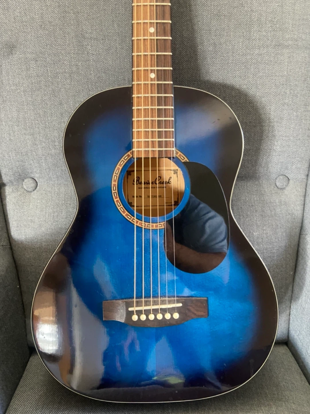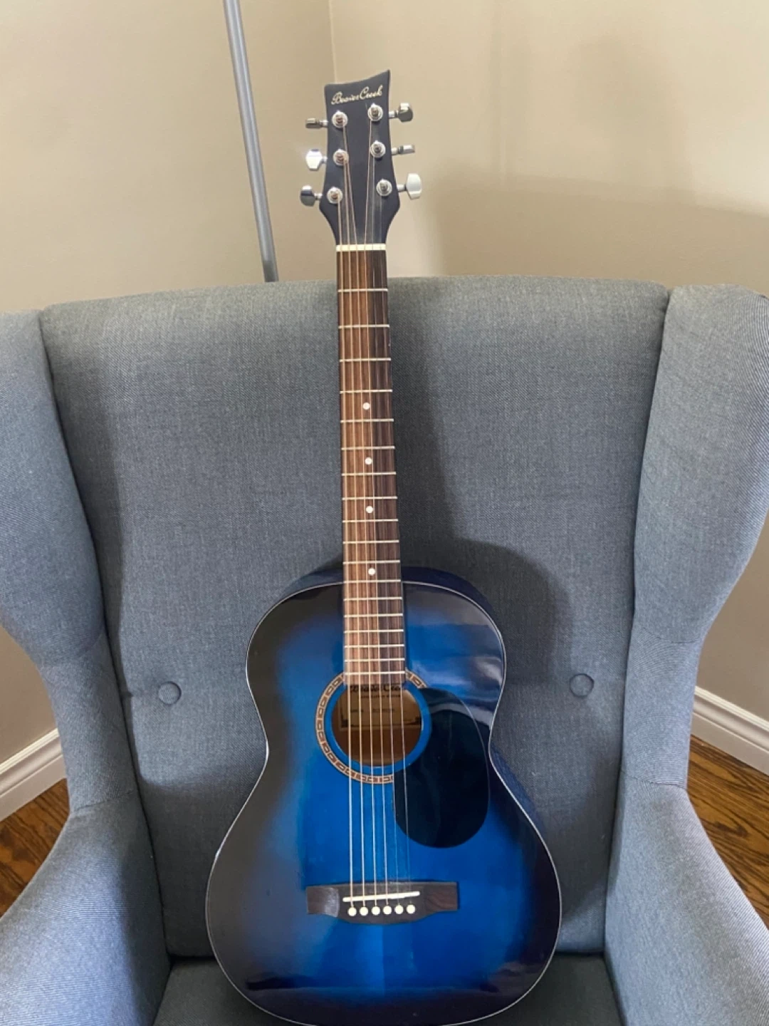 60Selling a Beaver Creek acoustic guitar in a beautiful blue finish! It's in used condition and ready for a new home. Perfect for beginners or anyone looking for a nice acoustic sound.