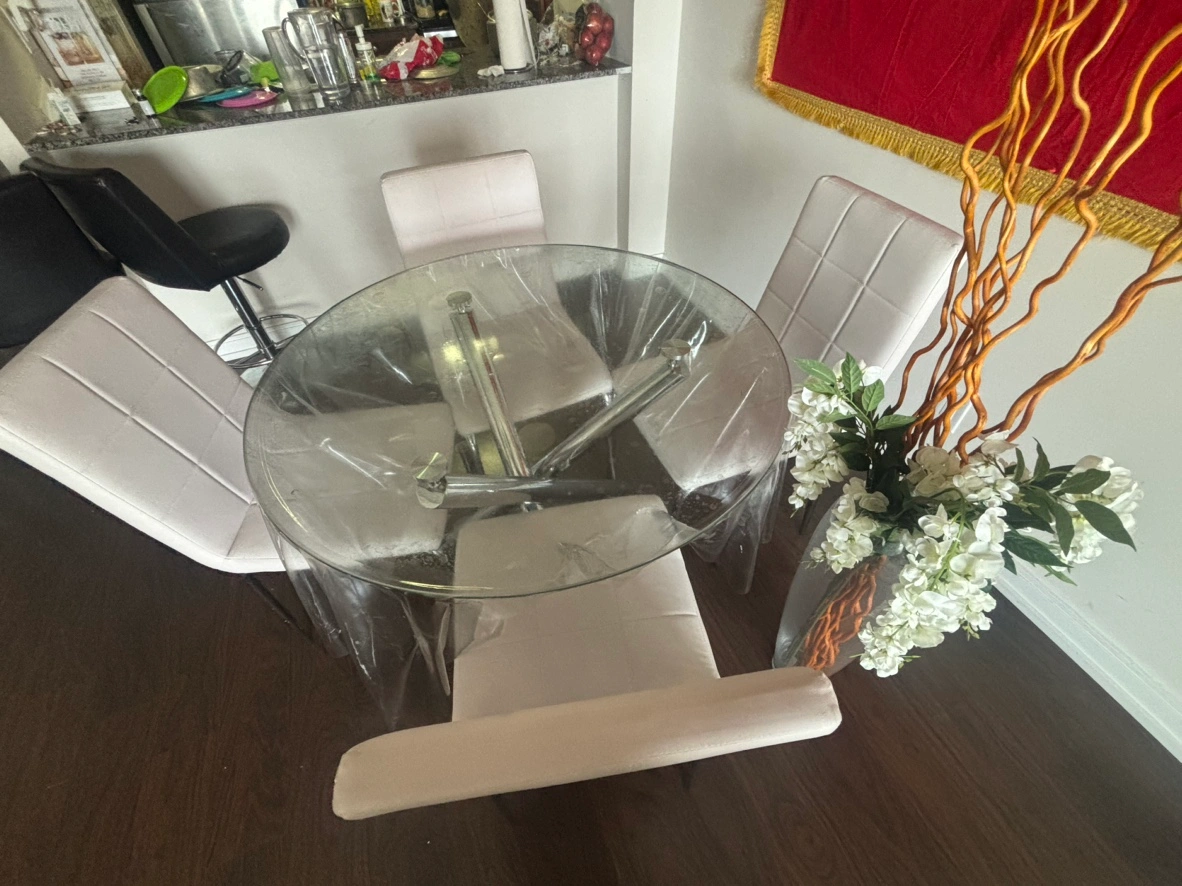 Buy & Selldining Glass Table and 4 Chairs with big flower vasedining Glass Table and 4 Chairs with big flower vase$230dining Glass table with chrome base and four white chairs with chrome legs. with big flower vase .WHERE TO MEET401 Kennedy RdView MapSELLERrenyVillage Green Square120 reviews3 chats·0 favorites·90 viewsSEND CHAT TO SELLERHi reny! I’m interested in your listing.Hi reny! I’m interested in your listing.Get the Karrot app to chatSign In to chat