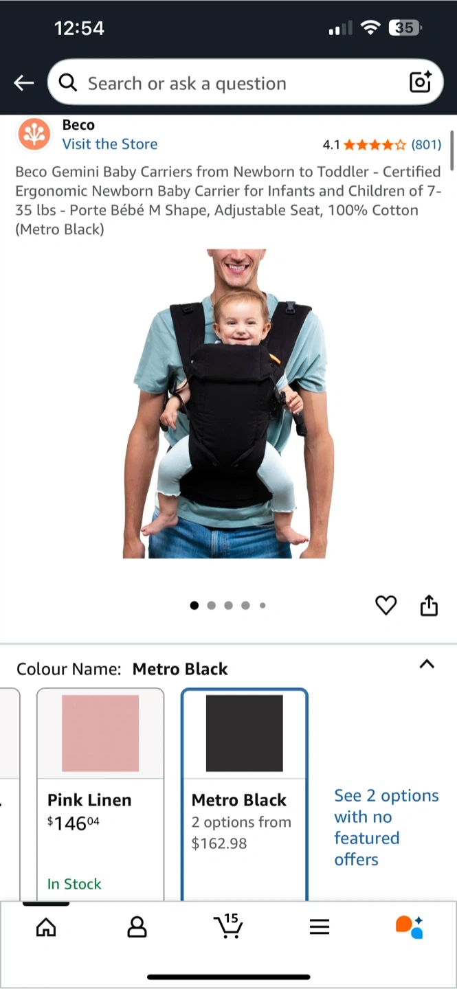 Selling a Beco Gemini baby carrier in Metro Black! This carrier is designed for newborns to toddlers, supporting children from 7-35 lbs. It features a certified ergonomic design with an adjustable seat and is made of 100% cotton