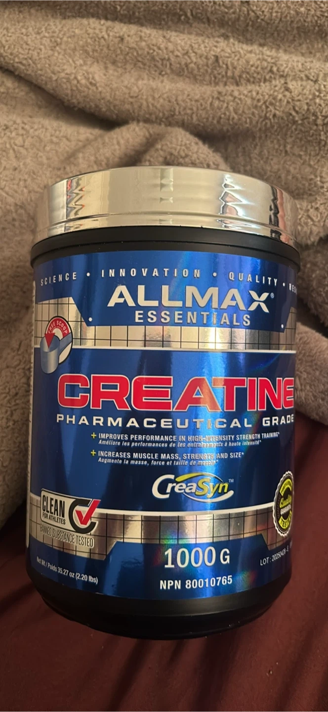 This is a 1000g container of ALLMAX Essentials Creatine Pharmaceutical Grade. It's designed to improve performance in high-intensity strength training. Increases muscle mass, strength, and size. Haven’t opened