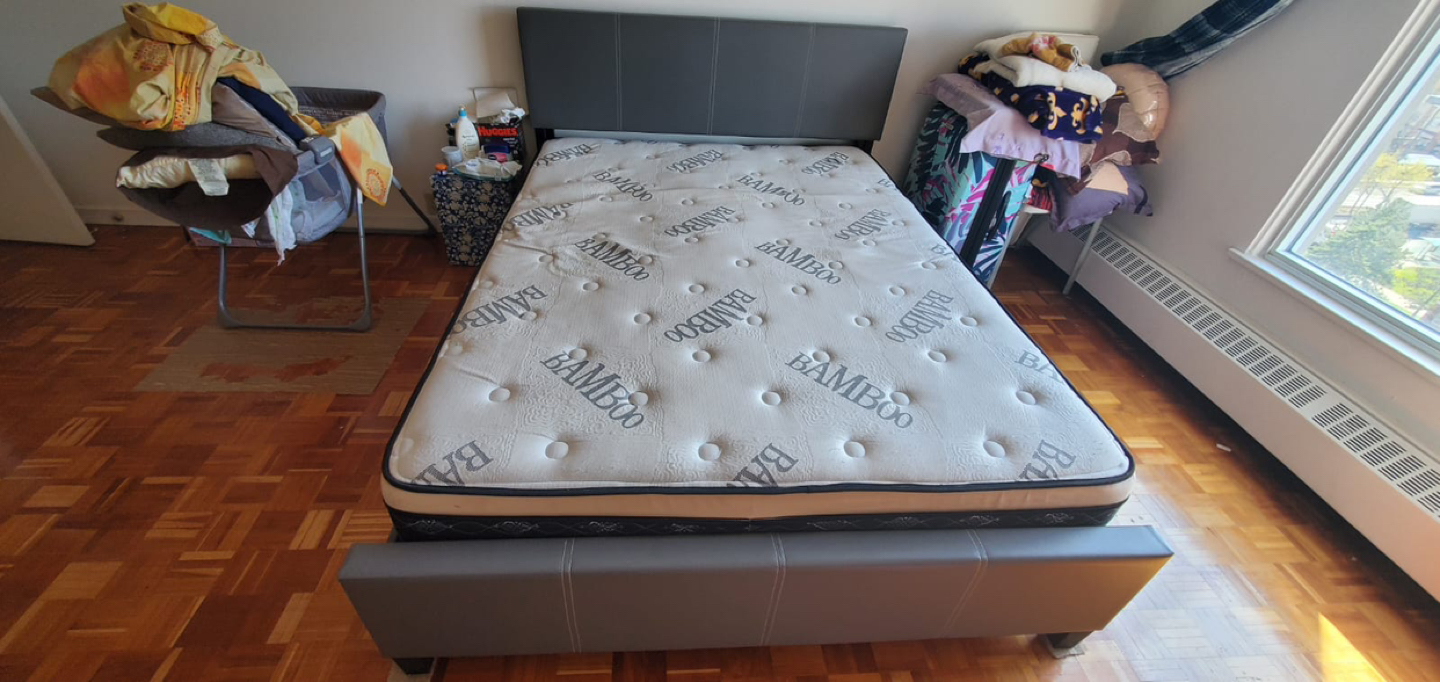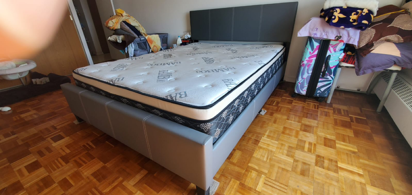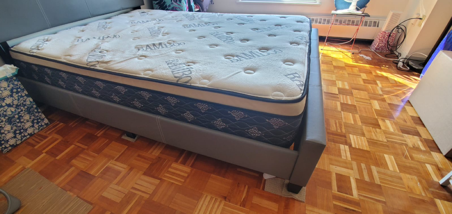Dark Blue Tufted Velvet Bench with Gold Frame 122cm