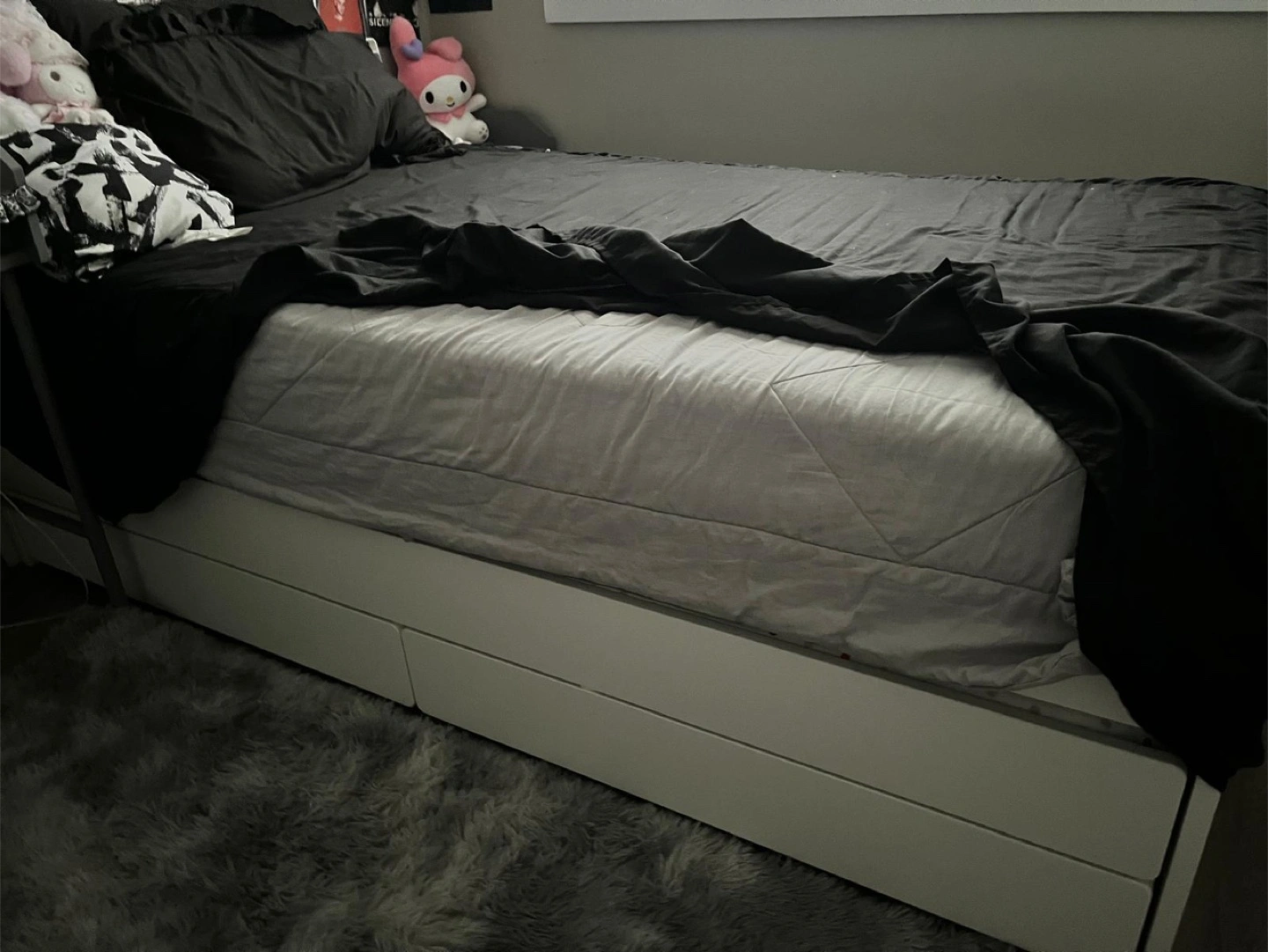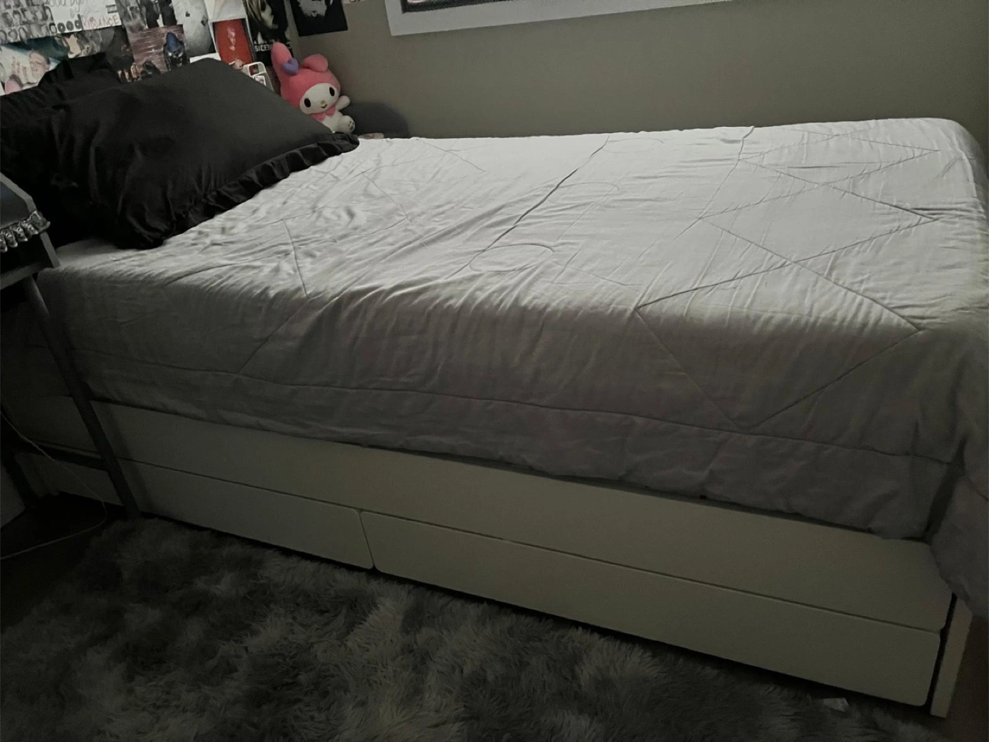 Ikea King Size Dark Brown Bed Frame w/ Nightstands (no mattress