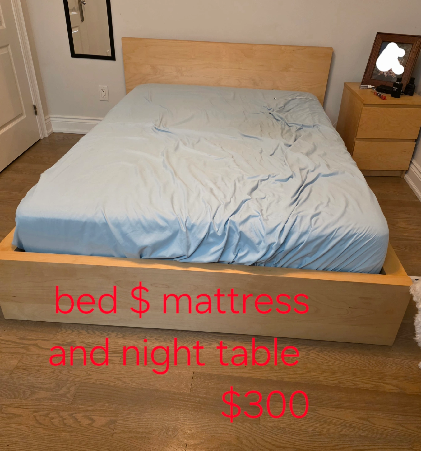 82Selling a bed frame, mattress, and matching night table. It's a great set for furnishing a bedroom! The set is in good condition and ready for a new home. double bedframe and mattress