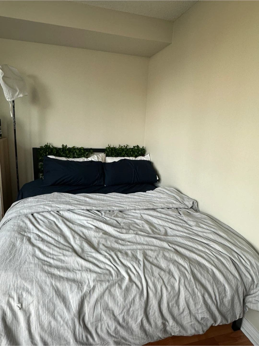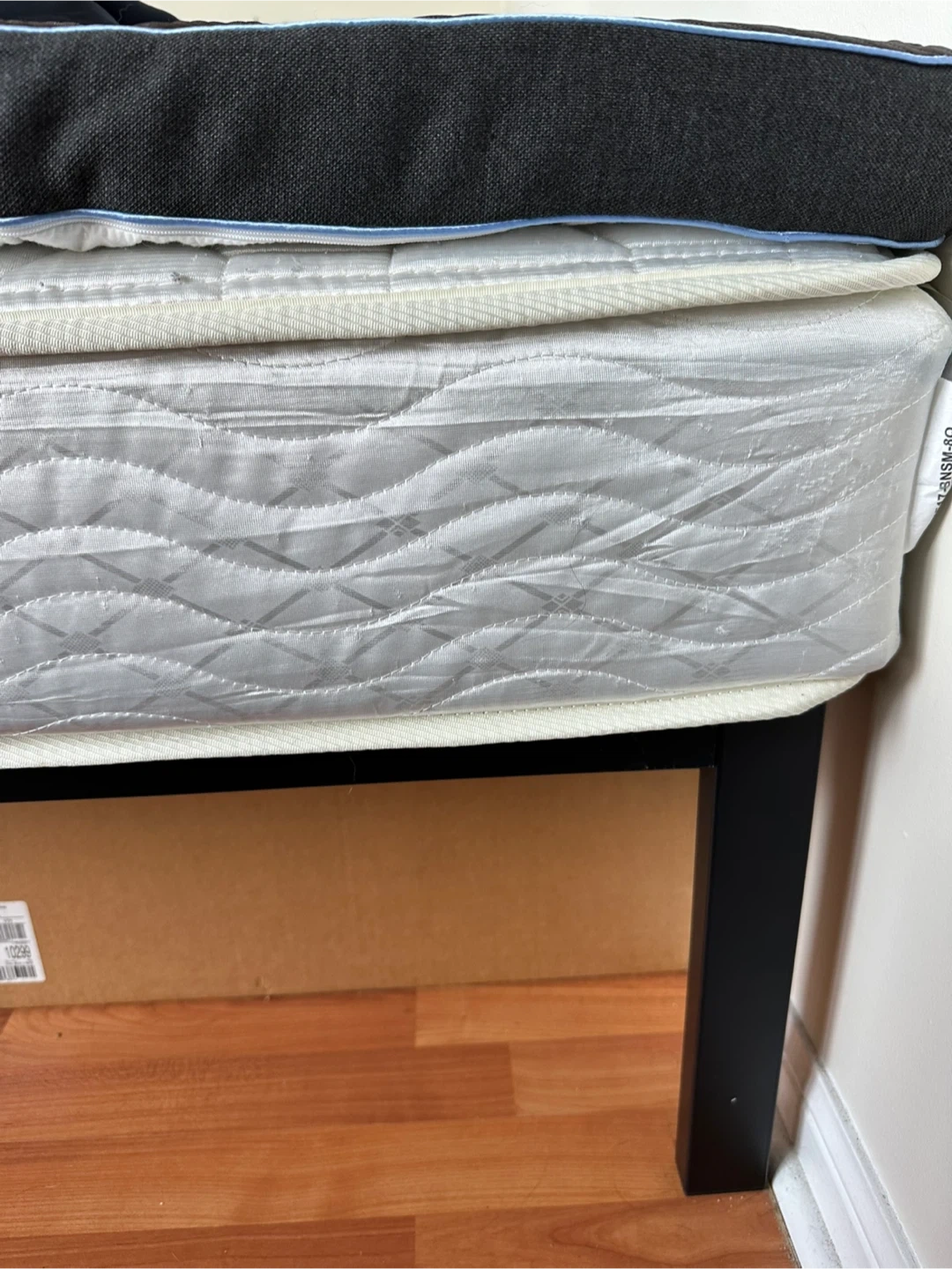 Selling an entire bed including. Items can be purchased individually/set: Queen sizeMetal bed frame (150) Mattress (150) 1 cooling Mattress Topper from Hush (150) 3 cloud pillows from Hush (25 ea) 1 memory foam ice pillow from Hush (50) Total original price: ~1200 Selling for: 500 obo Selling because moving out of Canada Pick up 9-12 Oct