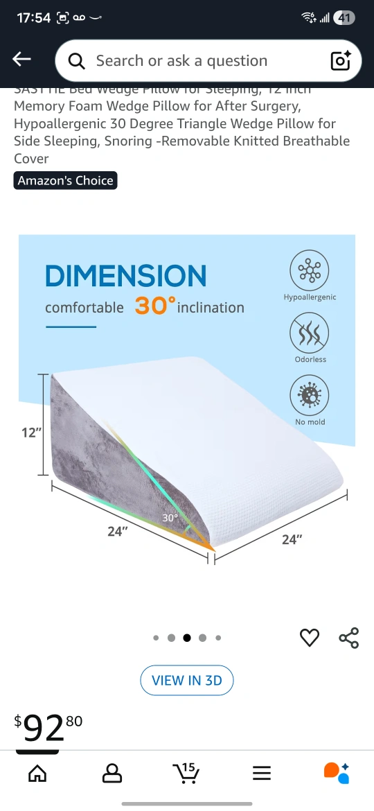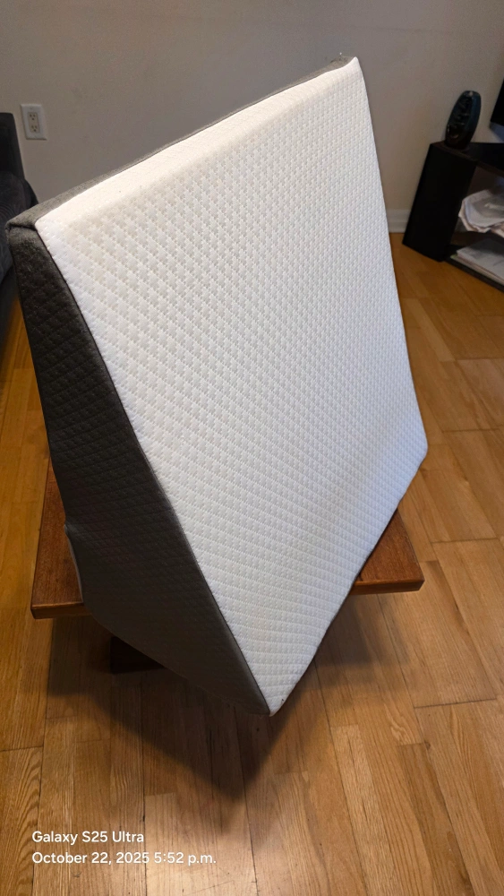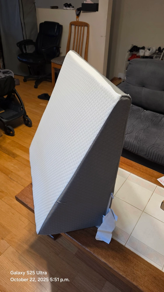 159Selling a SASTTIE bed wedge pillow, perfect for sleeping or back support! It's a 12-inch memory foam wedge pillow designed for after surgery, side sleeping, and snoring. It's hypoallergenic and has a removable knitted breathable cover. The pillow provides a comfortable 30-degree inclination. Originally bought for $92.80