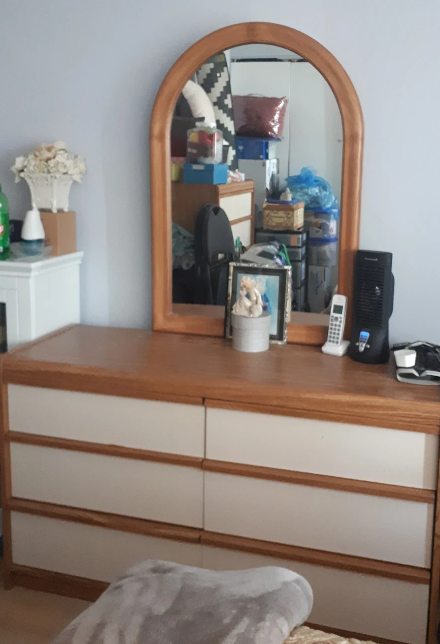 two pieces of furniture, mirror dresser and Armour with drawers.