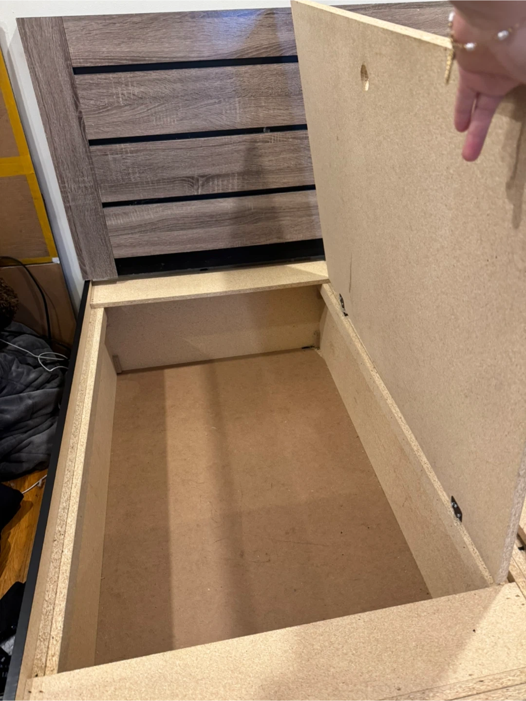 Selling a complete bedroom set! Includes a bed frame with storage drawers, a dresser with a mirror, two nightstands with two drawers, and a wardrobe with shelves and drawers. All pieces are in good condition and have a matching wood grain finish. Perfect for furnishing a new bedroom or upgrading your current space.