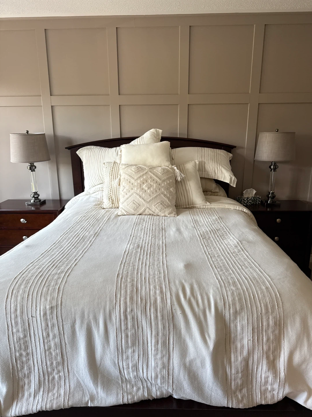 Selling a bedroom set in great condition! Includes a dresser with a mirror and two matching nightstands. The set has a rich, dark wood finish that would look great in any bedroom. All pieces are well-maintained and ready for a new home. Comes with queen size mattress too.