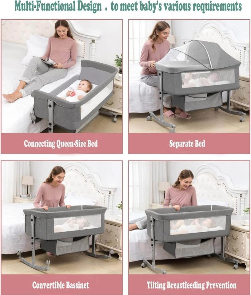 Bedside Crib, 3 in 1 Bassinet Baby Cradle Adjustable Height
