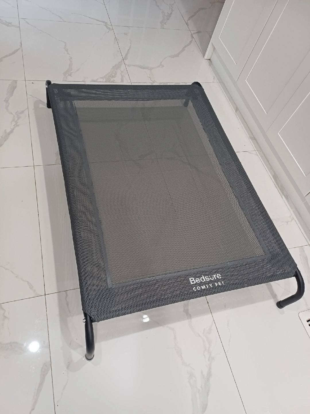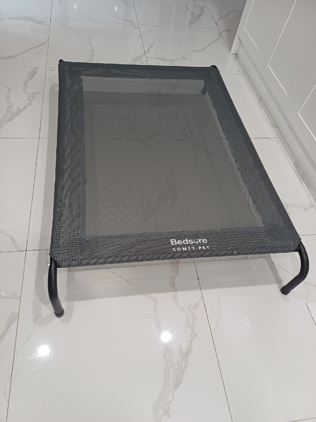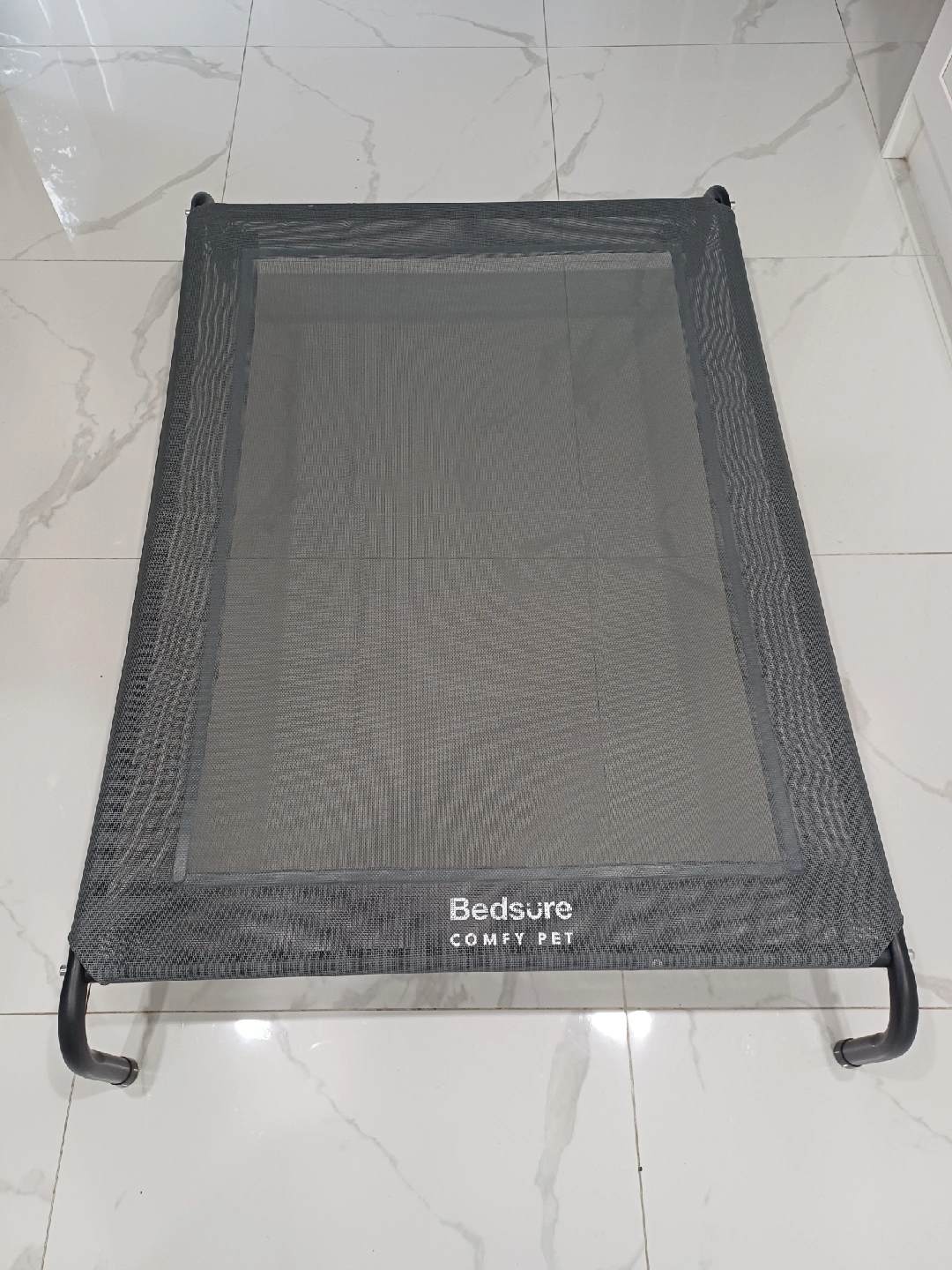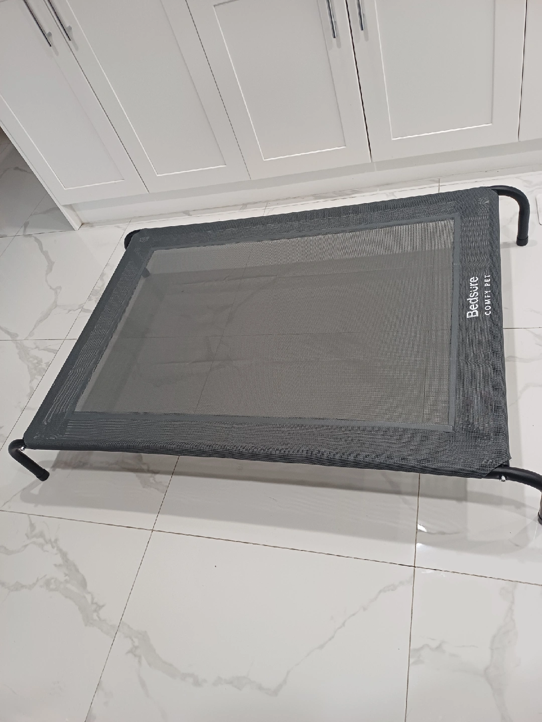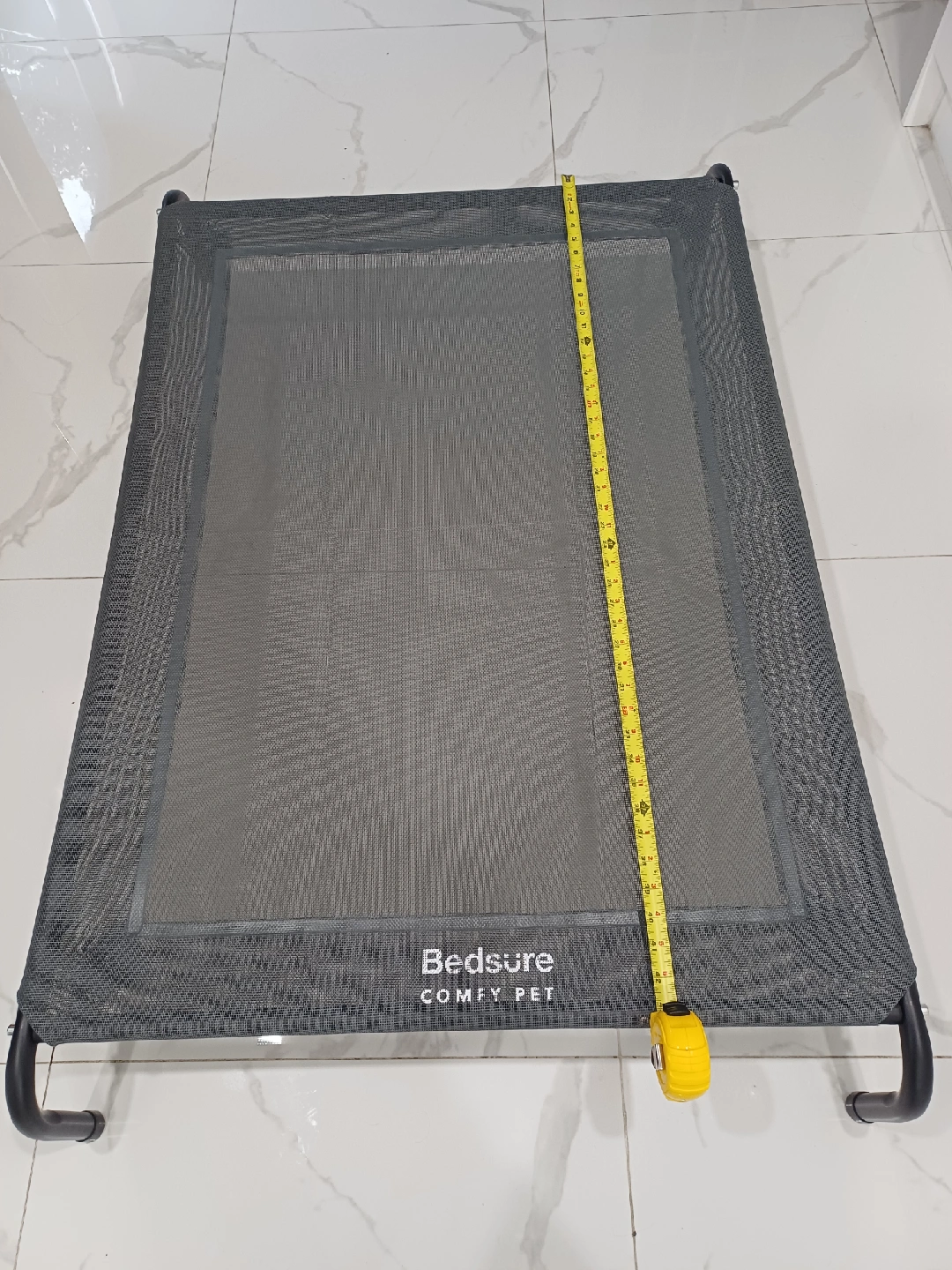 Selling a brand new..Grey- Bedsure Comfy Pet elevated dog bed. It's in great condition and provides a comfortable and supportive spot for your furry friend. The bed measures approximately 49 inches in length and 26inches in width, and 8 inches in height offering ample space for a large dog to relax. The elevated design promotes airflow and helps keep your pet cool and comfortable.