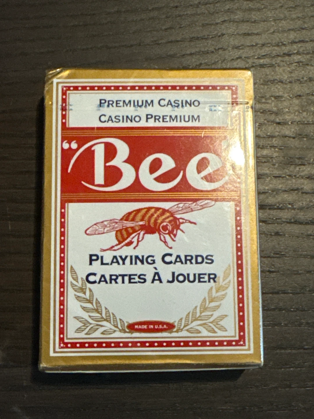 Selling a brand new deck of Bee Premium Casino playing cards! These cards are known for their quality and durability, perfect for any card game night. The cards are still sealed in their original packaging, ready for a new home