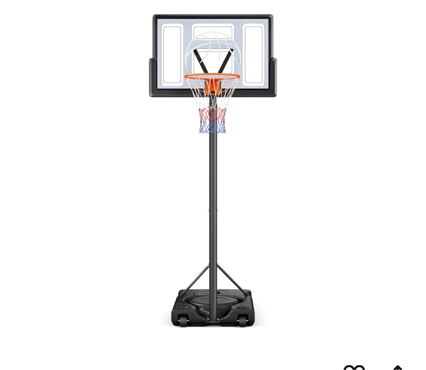 This is a Yohood basketball hoop. Model NO.: M021A-2. Production Date: 2024-10. Batch NO.: 202410-05. Manufactured by TAIZHOU LEXIN SPORTING GONGSLTD. [Damaged box, but never opened] Adjustable height range of 4.43 feet to 10 feet.