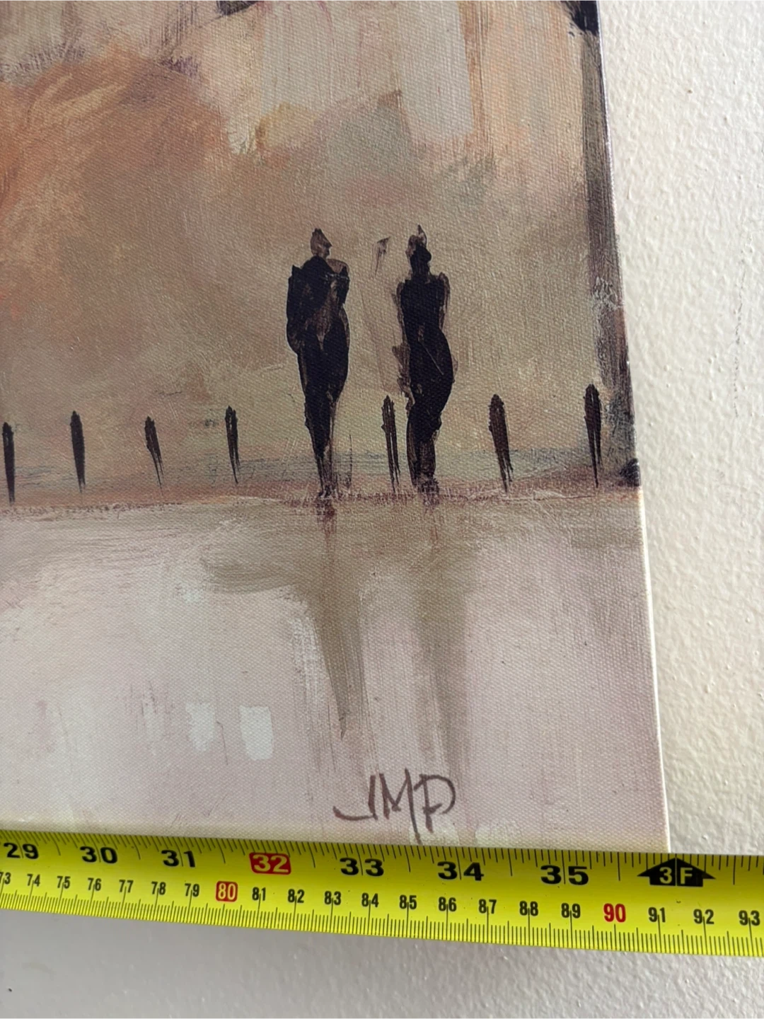 This artwork features a beautiful scene of a couple walking in a city. It's in good condition and adds a touch of elegance to any room.