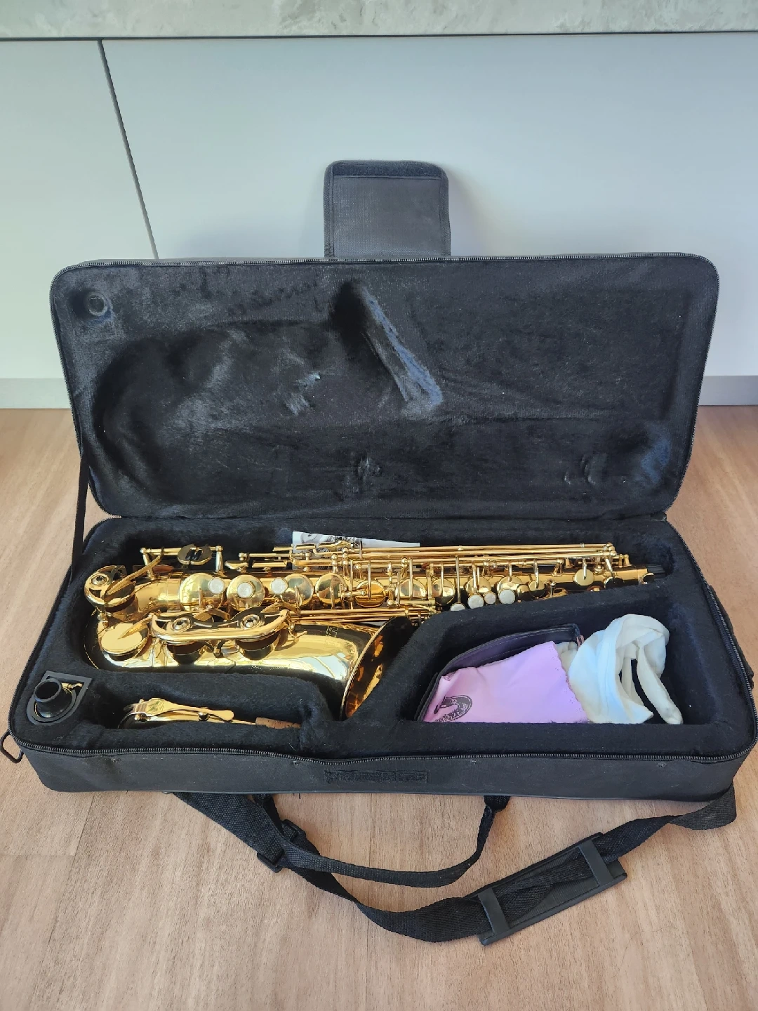 65Selling saxophone, complete with its case. It's in good condition and ready for a new home! Perfect for students or beginning players alike. Comes with the original case for safe storage and transport. approx. $420 brand new
