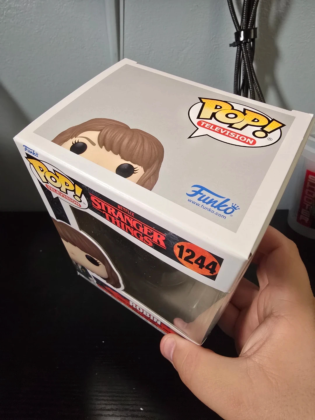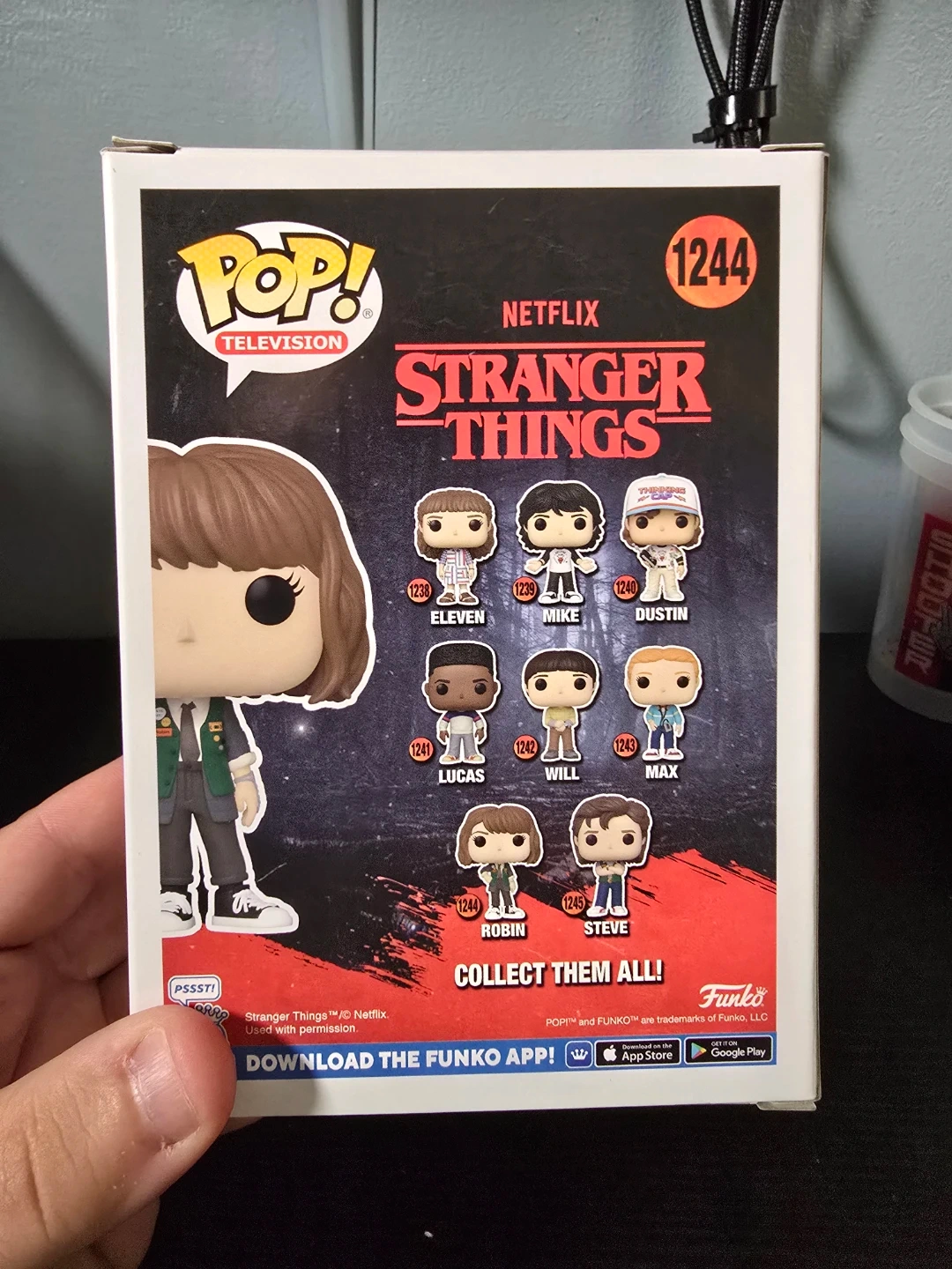 This is a Funko Pop! vinyl figure of Robin from Stranger Things. It's figure number 1244 in the collection. The item comes in its original box.