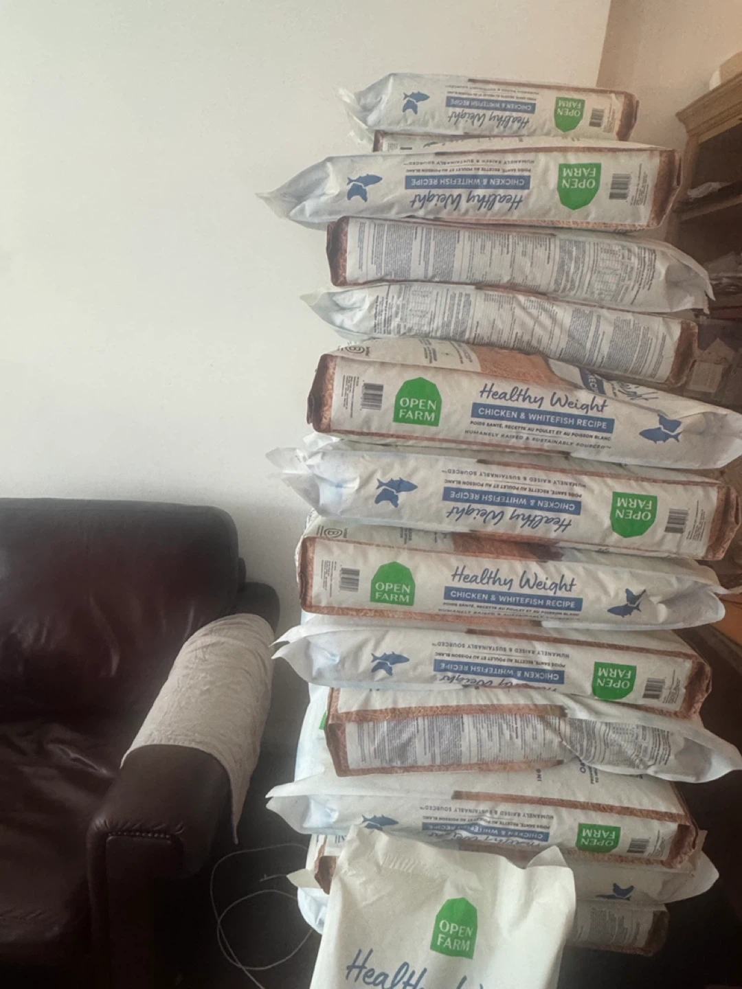 Open Farm Healthy Weight Chicken & Whitefish Recipe dog food bags. Each bag is 20lbs. This recipe is humanely raised and sustainably sourced. It's formulated for optimal weight management.