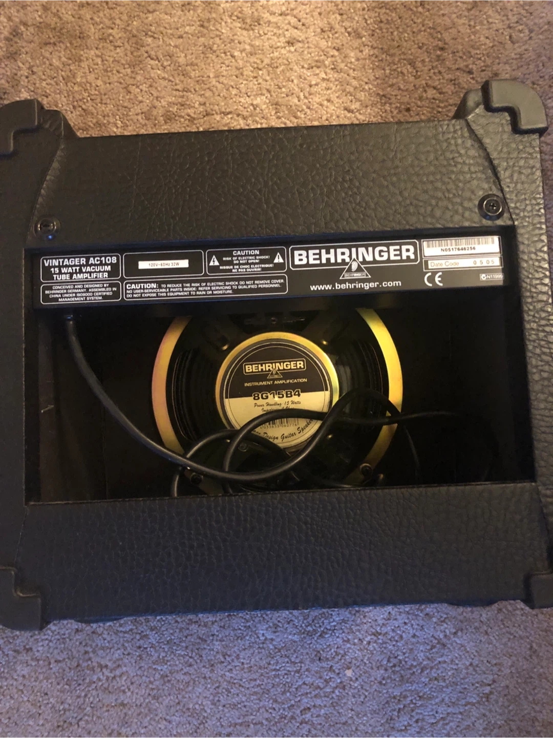 10Selling a Behringer Vintage AC108 15W Tube Amplifier. It's in great condition and ready to rock! Features include: - 15 Watt Vacuum Tube Amplifier - Vintage design - Headphone output for silent practice