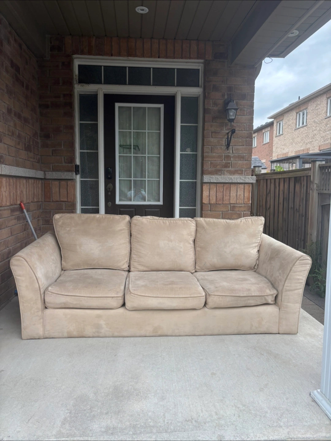 60π Location: Markham, ON π° Price: $250 (OBO) Looking for a comfy, spacious couch? This beige 3-seater sofa is in good condition, with plush cushions and soft fabric. Perfect for a living room, basement, or student space. β Seats 3 comfortably β Neutral beige color β easy to match with any decor β Cushions are removable for easy cleaning β Sturdy frame, still lots of life left Dimensions: Approx. 85β (length) x 36β (depth) x 32β (height) π Pickup in Markham β easy porch pickup. Message me if interested!