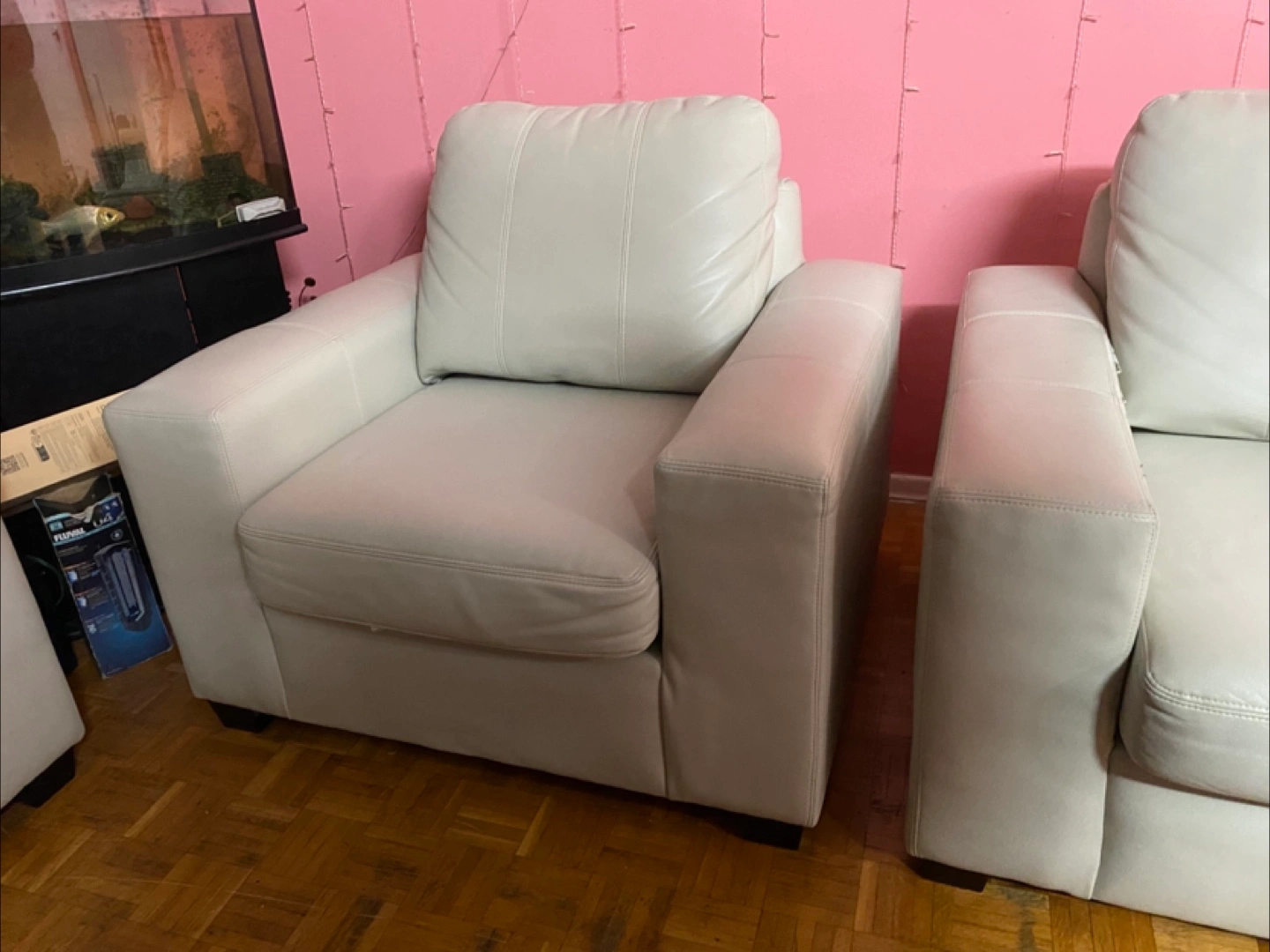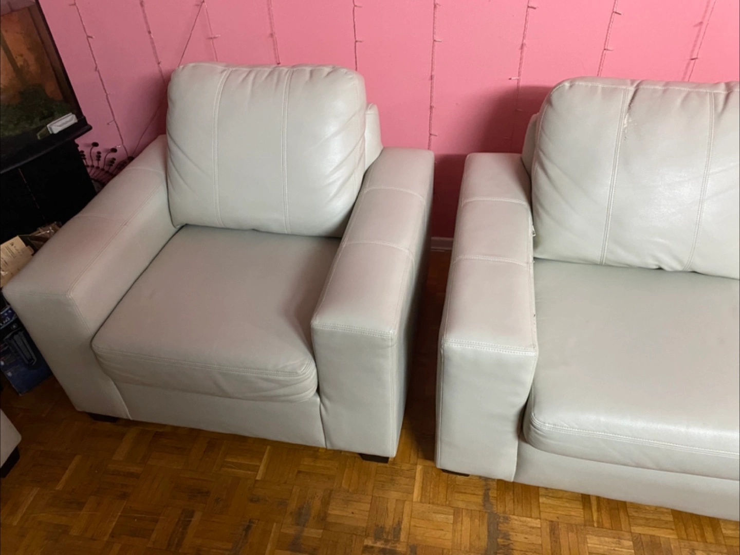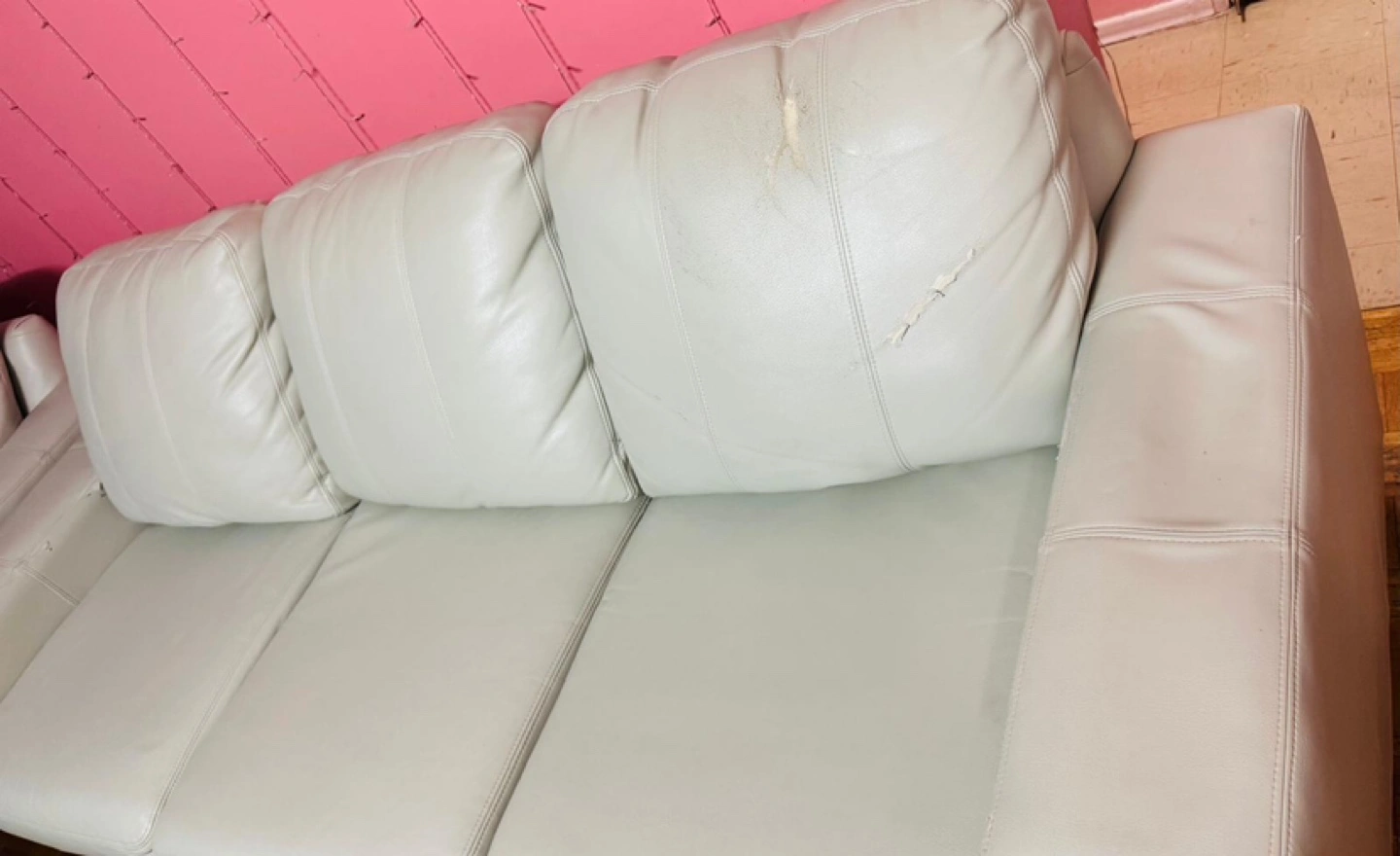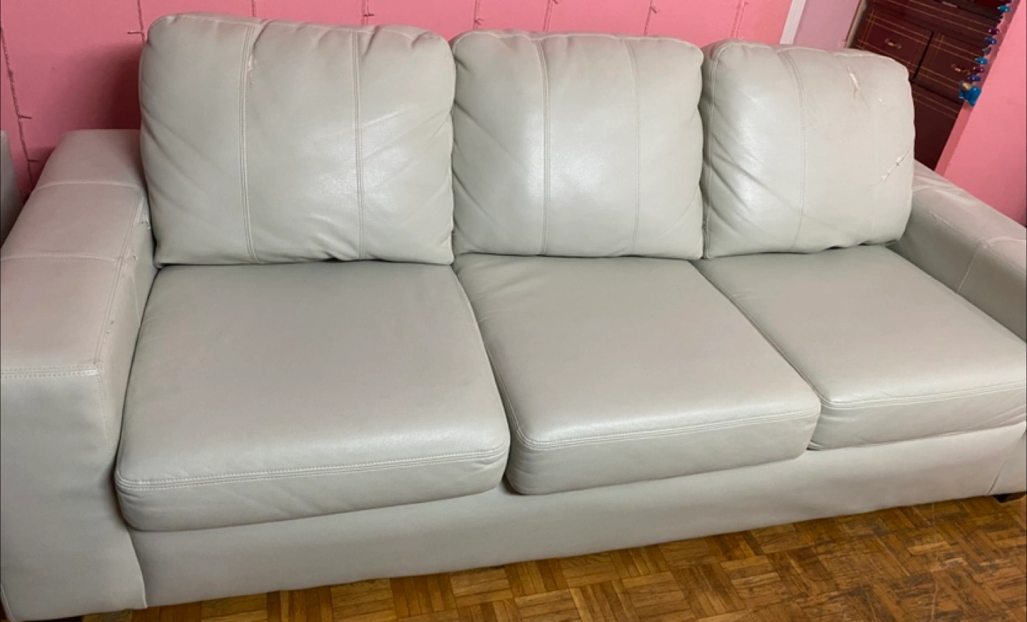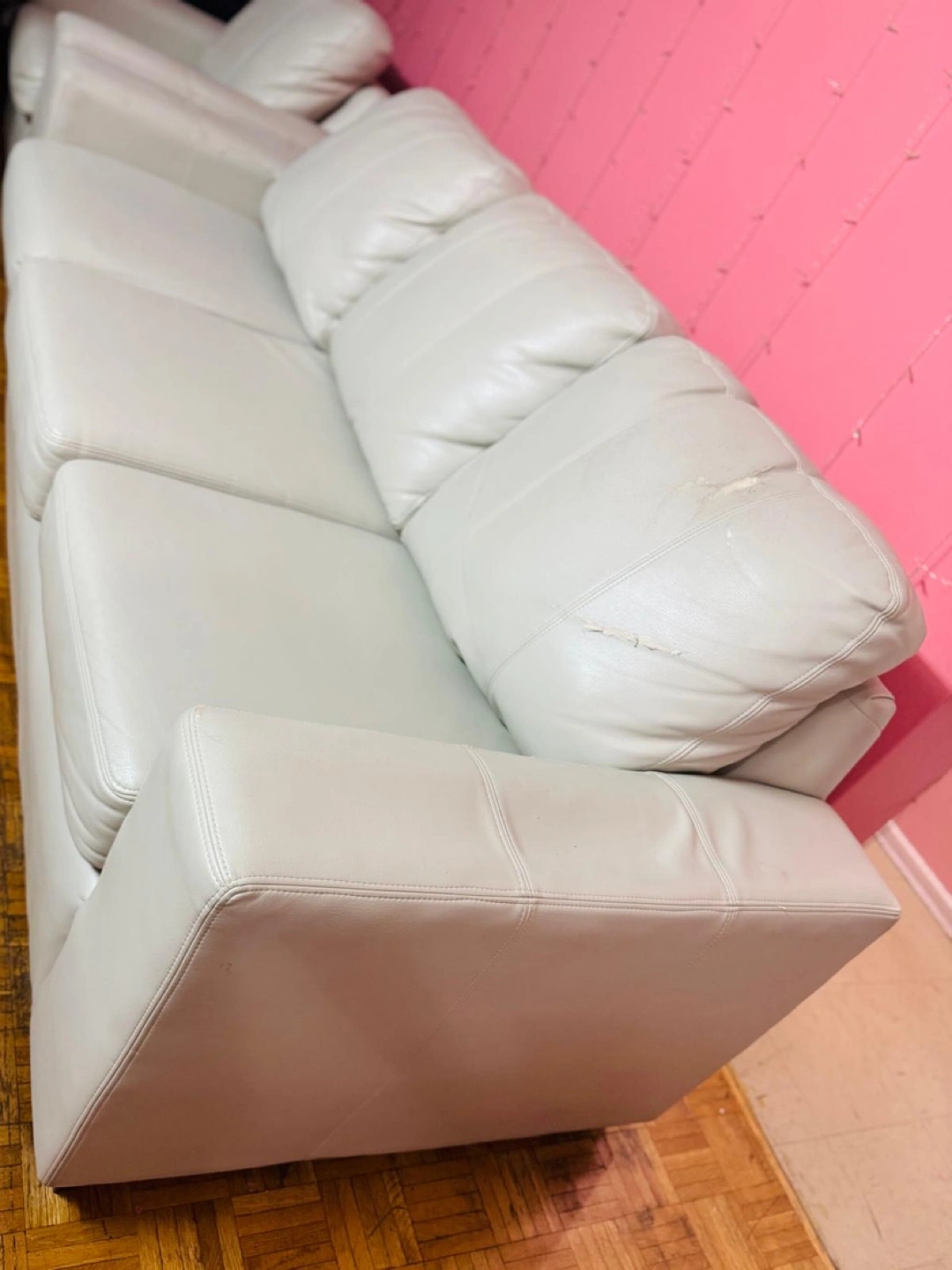10This stylish leather living room set includes a sofa, love seat, and chair, perfect for upgrading your living space. This set is used and has some damage (see photos). Structurally in good shape and very comfortable. Given the condition of the set, I'm pricing it to sell quickly. Don't miss out on the chance to own this set. If the ad's up, it's still up for grabs, so feel free to reach out!