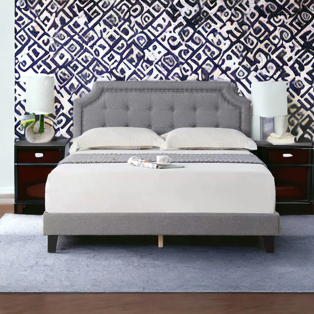 Introducing our stylish Beige Linen Fabric Bed Frame with a 41-inch headboard, perfect for any bedroom. This brand-new item is available in Double ($349), Queen ($379), and King ($399) sizes. The frame includes slats, so no box spring is required, and all tools and instructions for easy assembly are included. Packaging comes in two boxes for convenience. Delivery is available, and it's available through our warehouse sale!