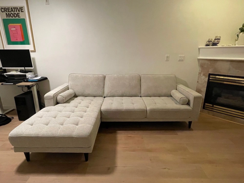 Selling a beige, minimalist design sofa. Originally purchased for $1,500, negotiable if you’re interested. The sofa has been used with a protective cover, so it’s in excellent condition, and it comes with two cushions. Located near Coquitlam Centre. Pickup only, please.