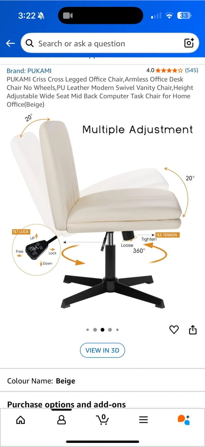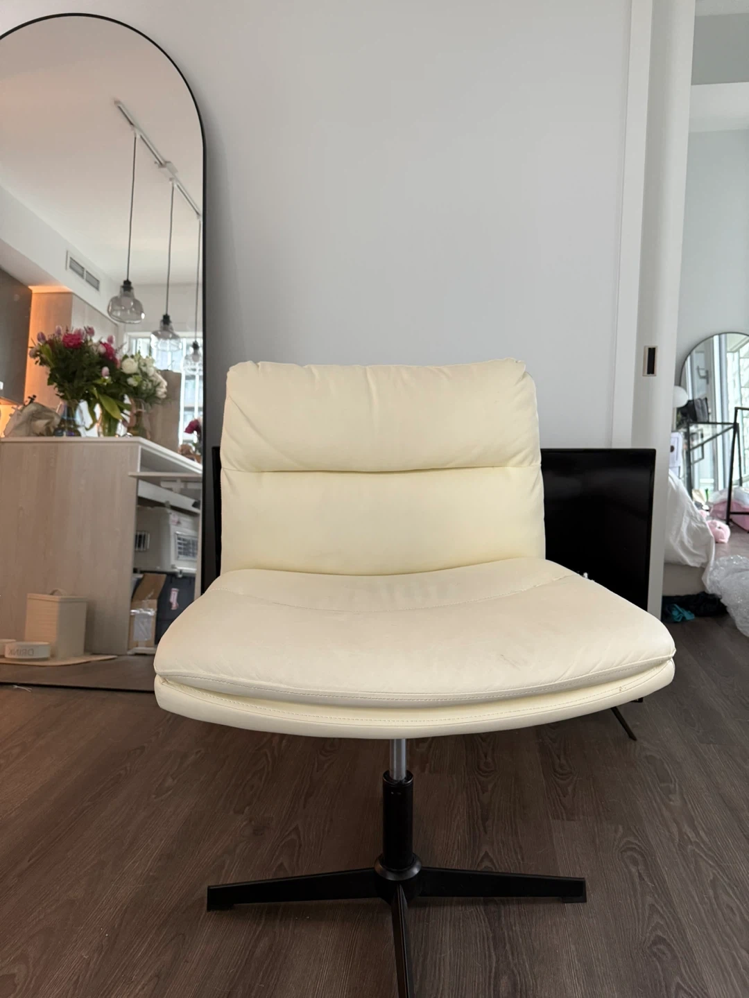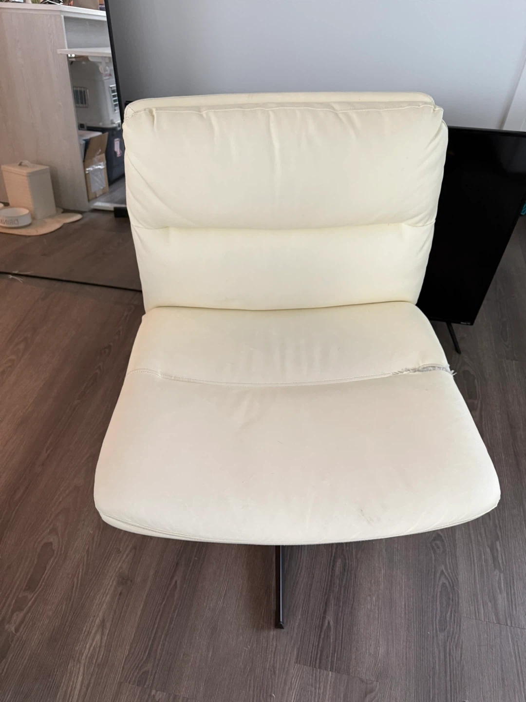Selling a PUKAMI office chair in beige. It's a comfy chair with adjustable height and a swivel base. Please note that there's some wear and tear on the seat, as shown in the photos. Super comfy, tear can be fixed easily with sewing kit